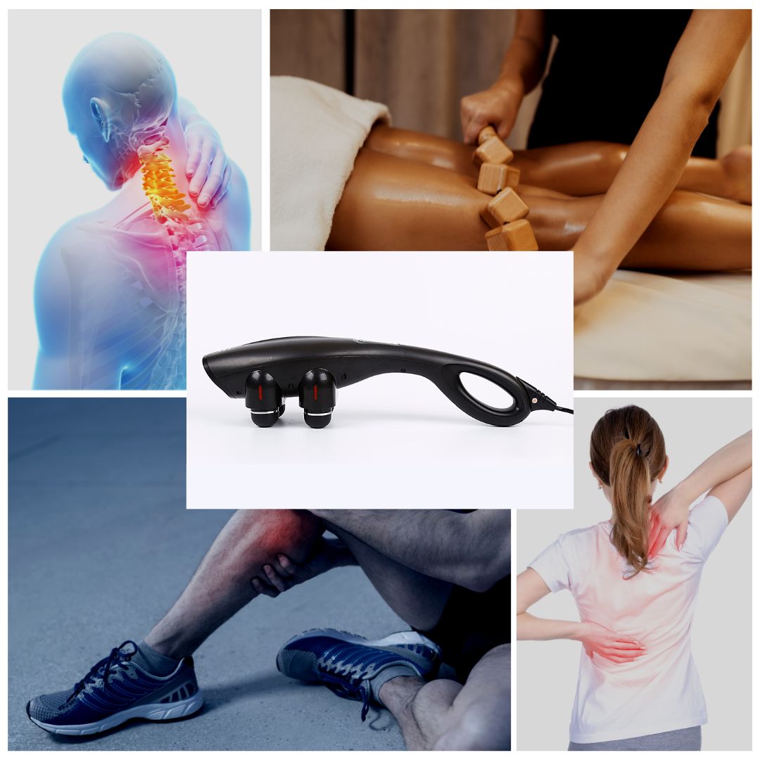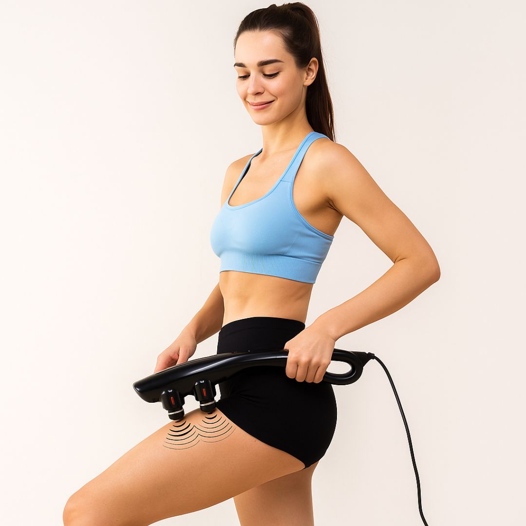 Професионален уред за масаж с 4 масажни глави и 12 приставки, който: