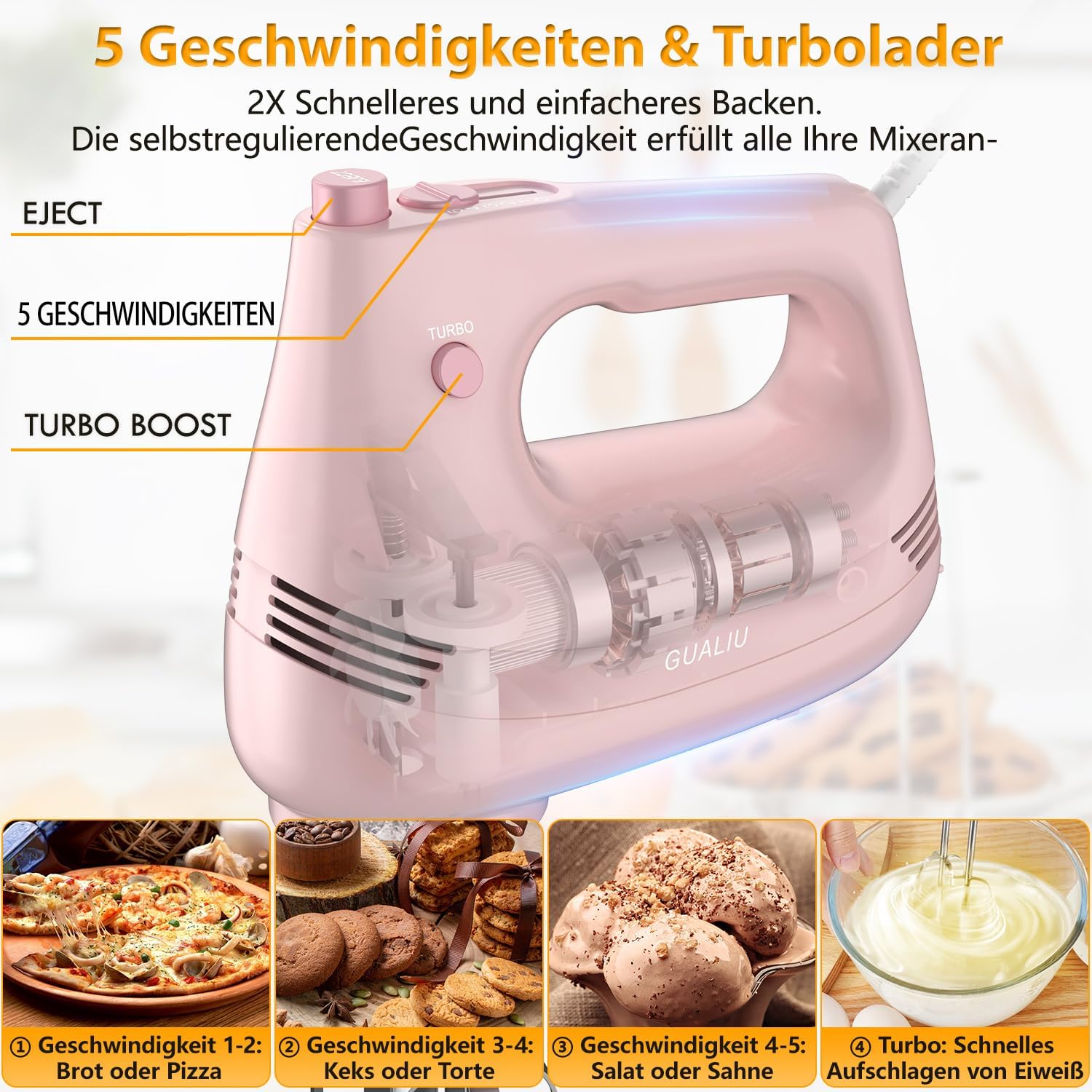 Stufe 5: Für die Zubereitung von Eiscreme, zum Aufschlagen von Eiweiß, Kartoffelpüree, Sahne usw.