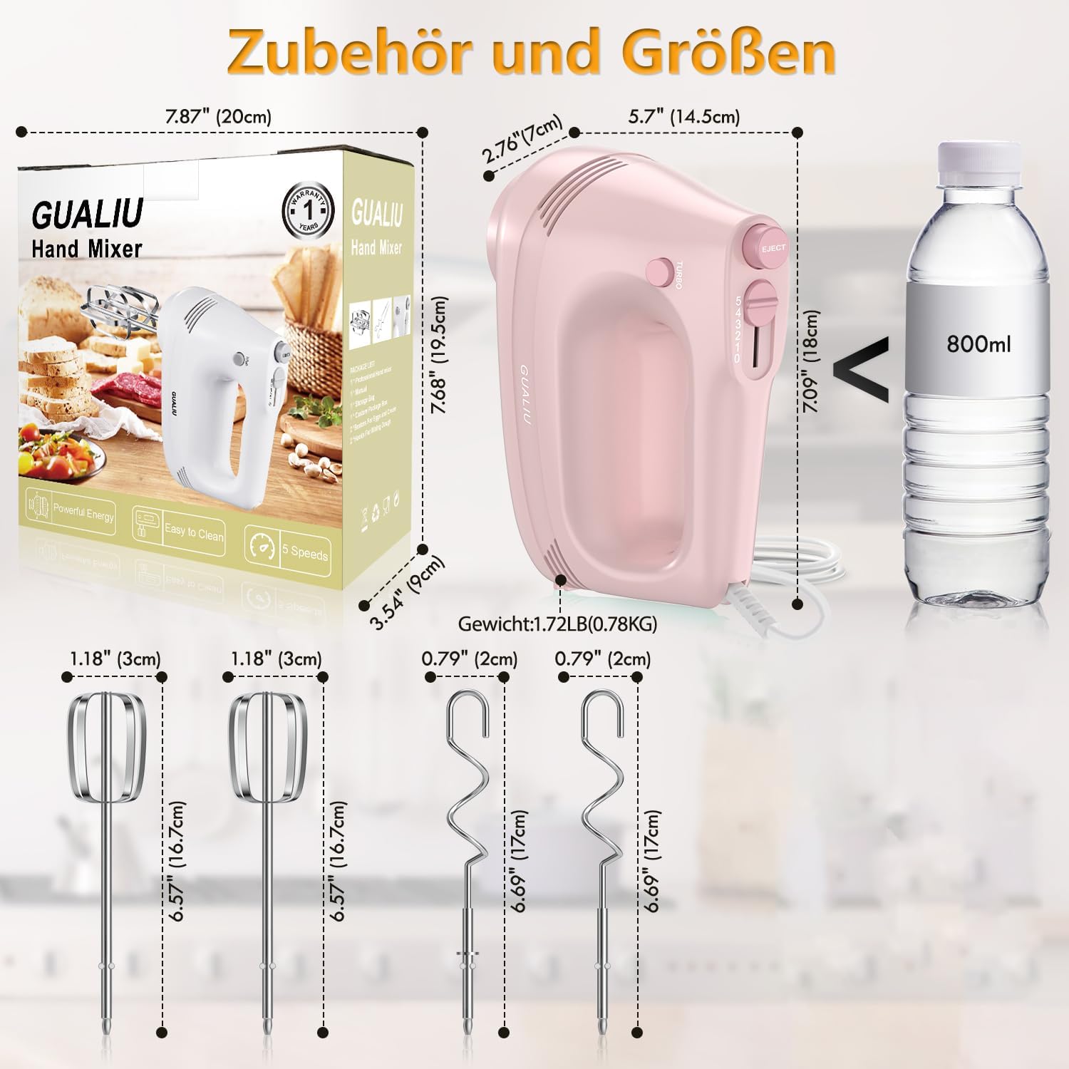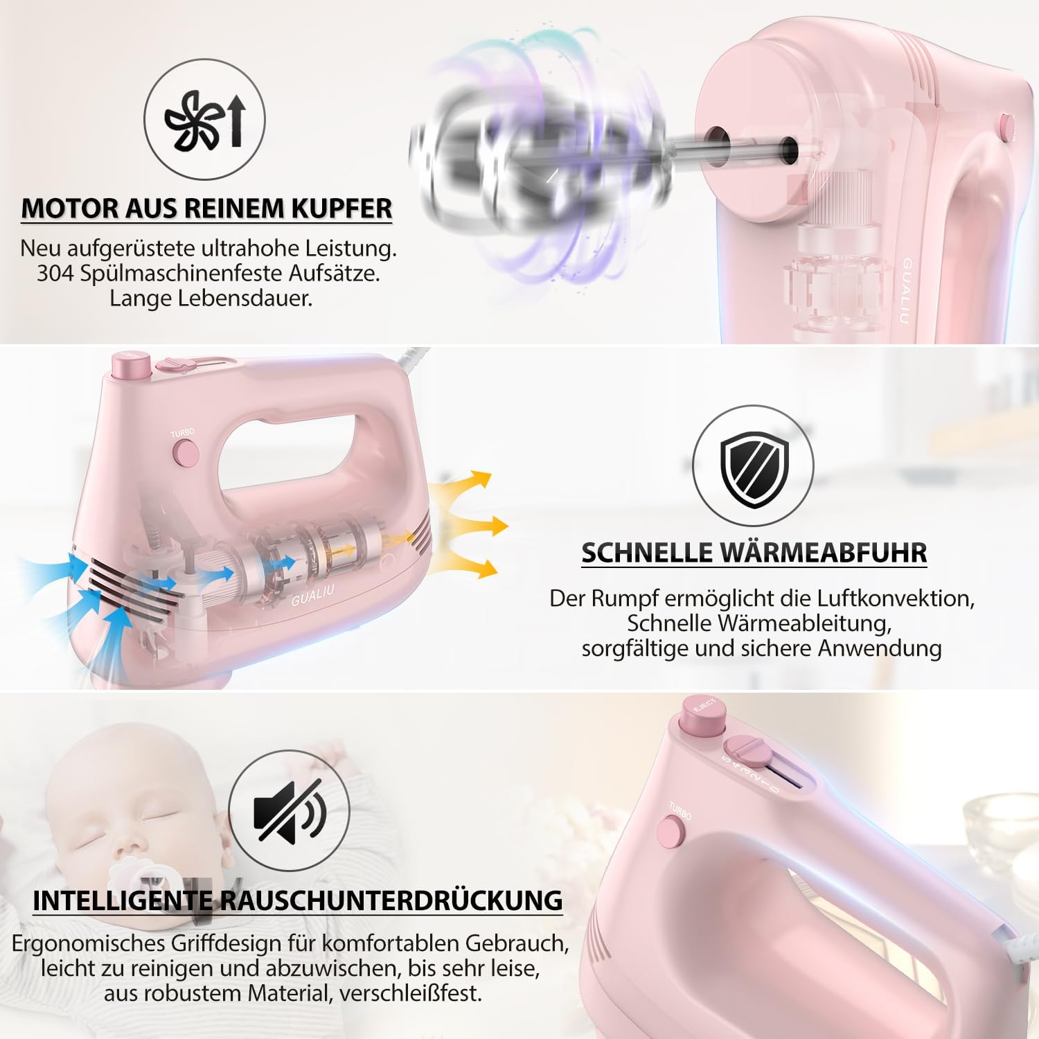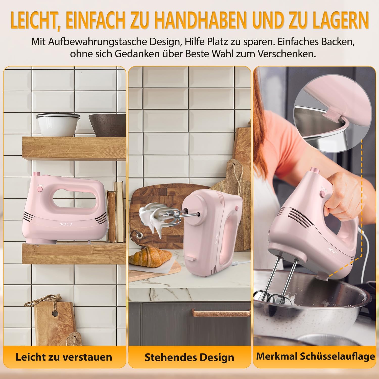 Eingebaute Schüsselhalterfunktion, kann den Mixer auf die Schüssel setzen, lange Zeit verwenden ist nicht müde Hände
