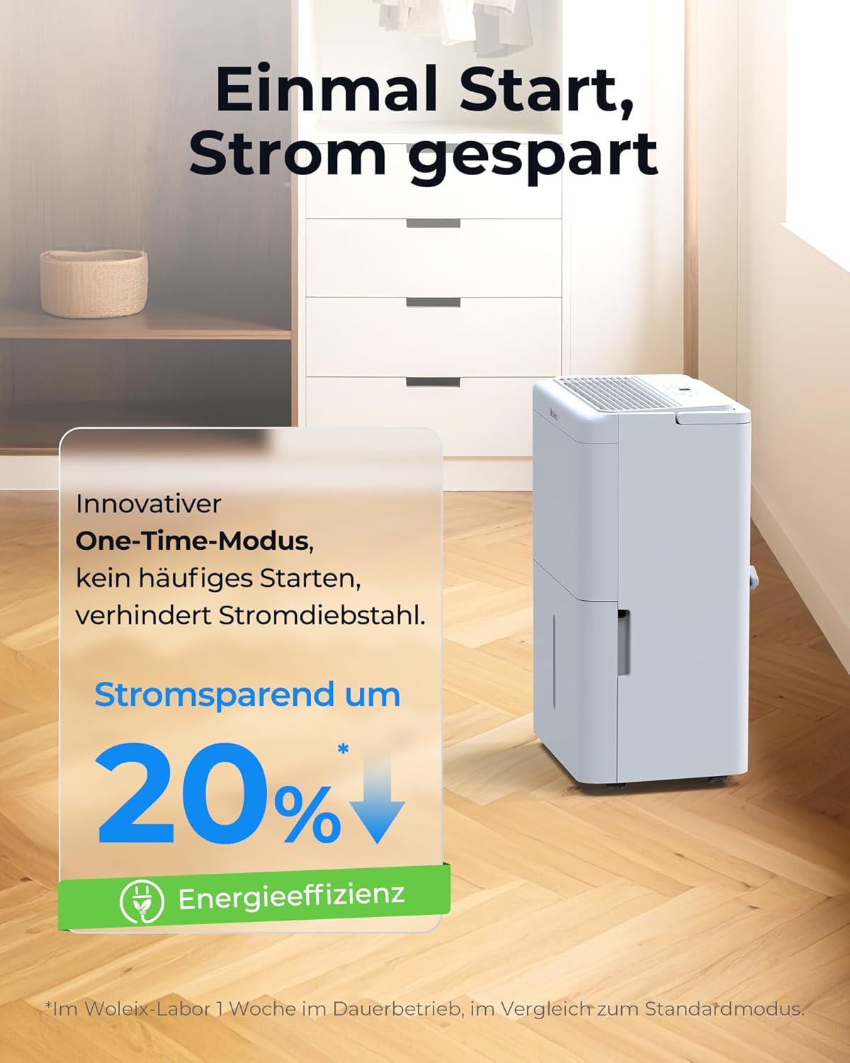 • Иновативна технология за обезвлажняване: Нашите електрически влагоабсорбатори използват усъвършенствана компресорна технология TCL x Woleix с патентовани основни иновации (CN105627493A, CN103673214A). Благодарение на интелигентното управление и ефективния дизайн на топлината, те оптимизират процеса на обезвлажняване - за максимална ефективност (до 20 л/ден) с минимална консумация на енергия. Най-добрата производителност в индустрията за максимална сухота.