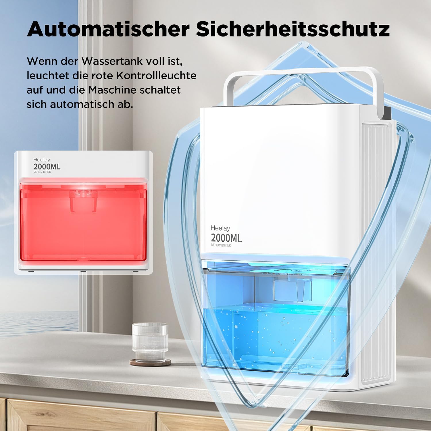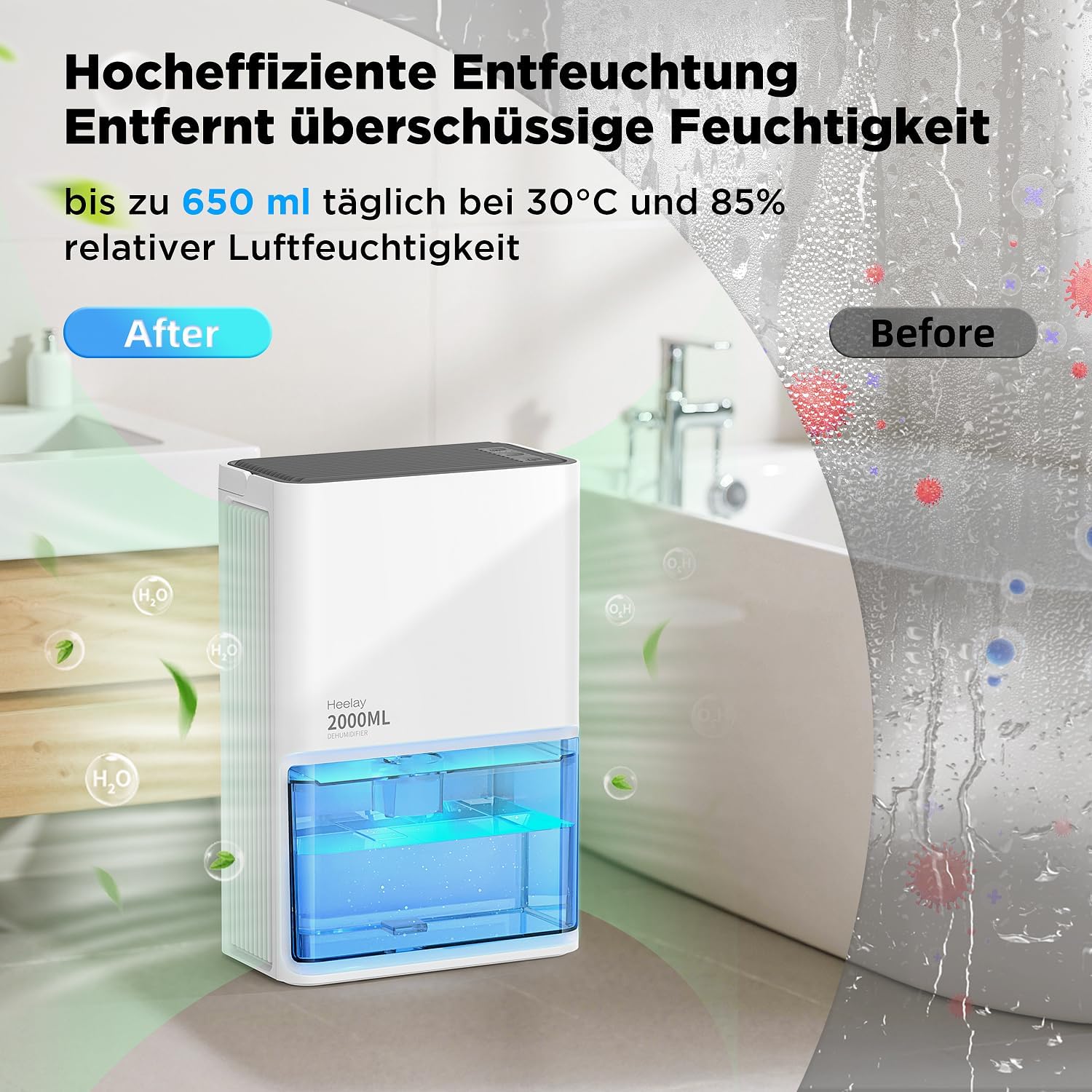 • Преносим влагоабсорбатор за всеки ъгъл: Компактният размер и преносимият дизайн на дръжката правят този влагоабсорбатор тих и гъвкав, където пожелаете. Идеален за малки помещения с висока влажност, като кухня, кемпер, малка каравана, шкаф, скрин, стена и прозорец.