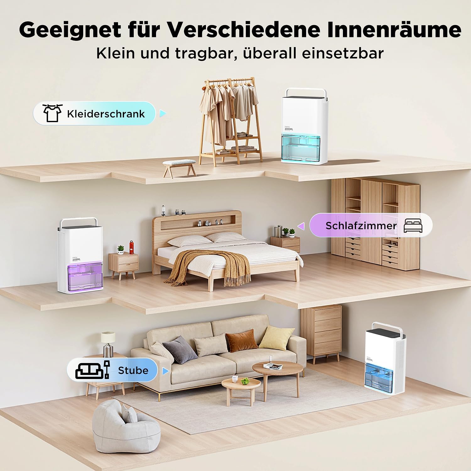 • Малък влагоабсорбатор 2025: Все още ли имате проблеми с влажни помещения, мокри шкафове и подове? В затворено помещение влагоабсорбаторът може ефективно да намали влажността и да осигури приятна и комфортна среда. Идеален за помещения с площ под 15 м².