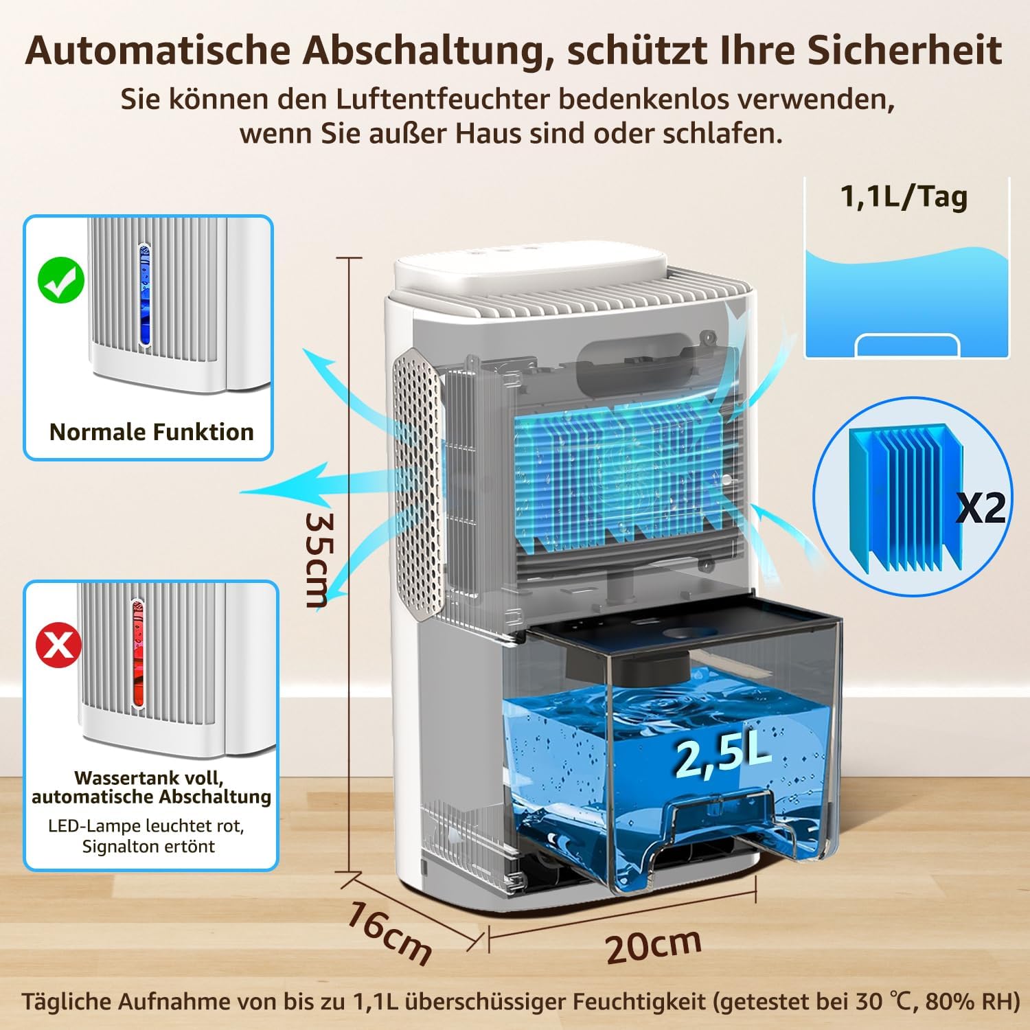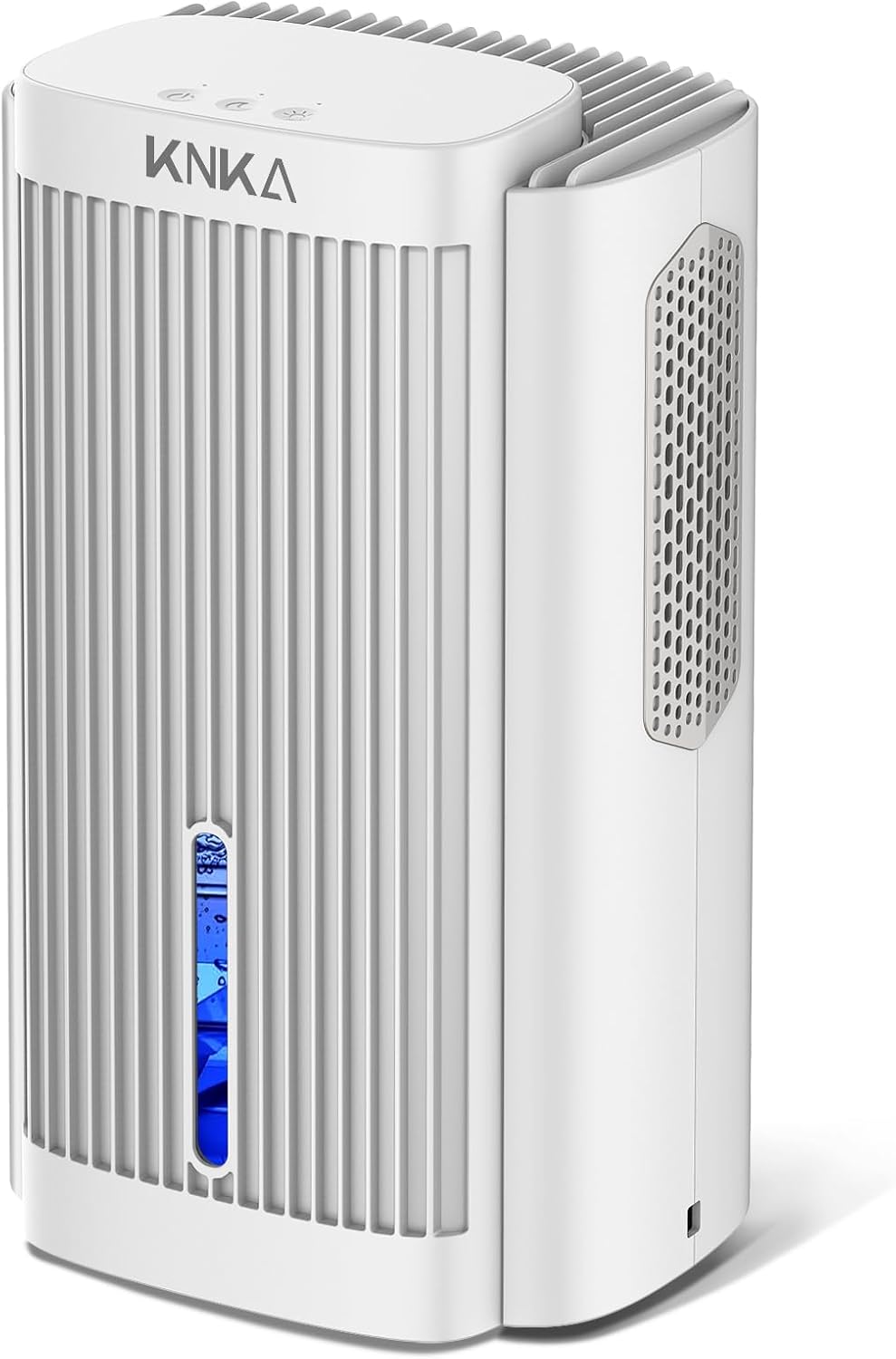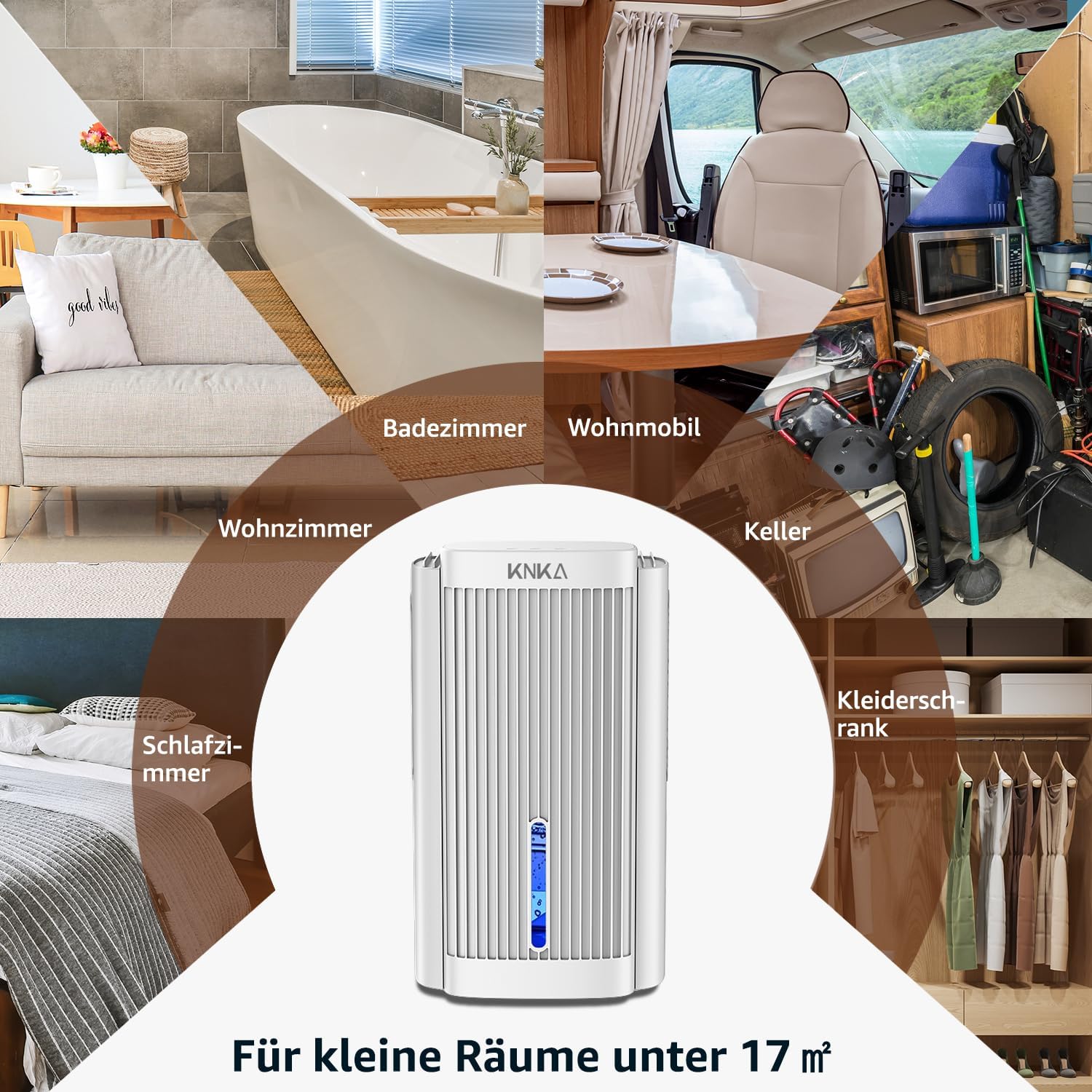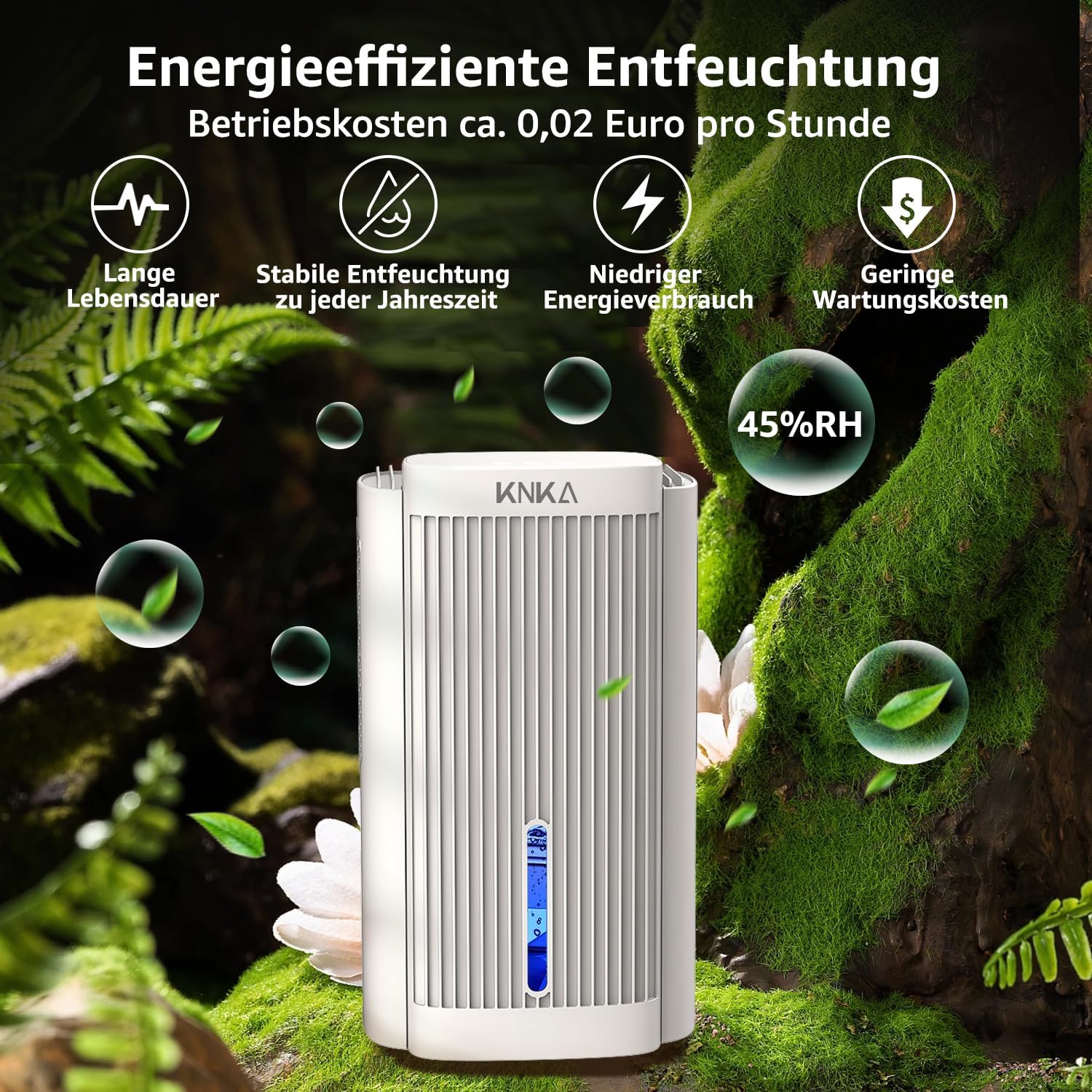 Електрически влагоабсорбатор KNKA, 1.1 л, влагоабсорбатор за помещения под 28 dB за дома, банята, мазето, с автоматично изключване и режим на заспиване, цветна нощна светлина (бяла)