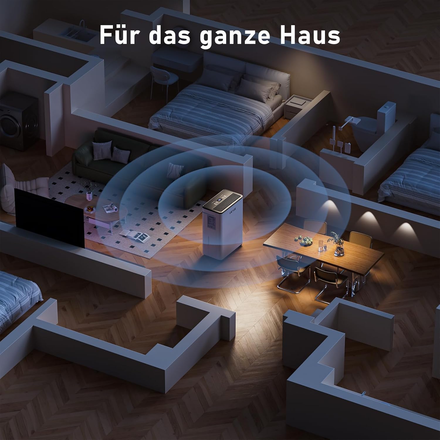 • Умен домашен влагоабсорбатор: Този преносим влагоабсорбатор има четири висококачествени колела, въртящи се на 360 градуса, така че може лесно да се мести от стая в стая, за да се обезвлажни всяка стая в къщата. Влагоабсорбаторът помага за защита на стените, конструкцията на къщата и мебелите от влага и удължава експлоатационния им живот.
