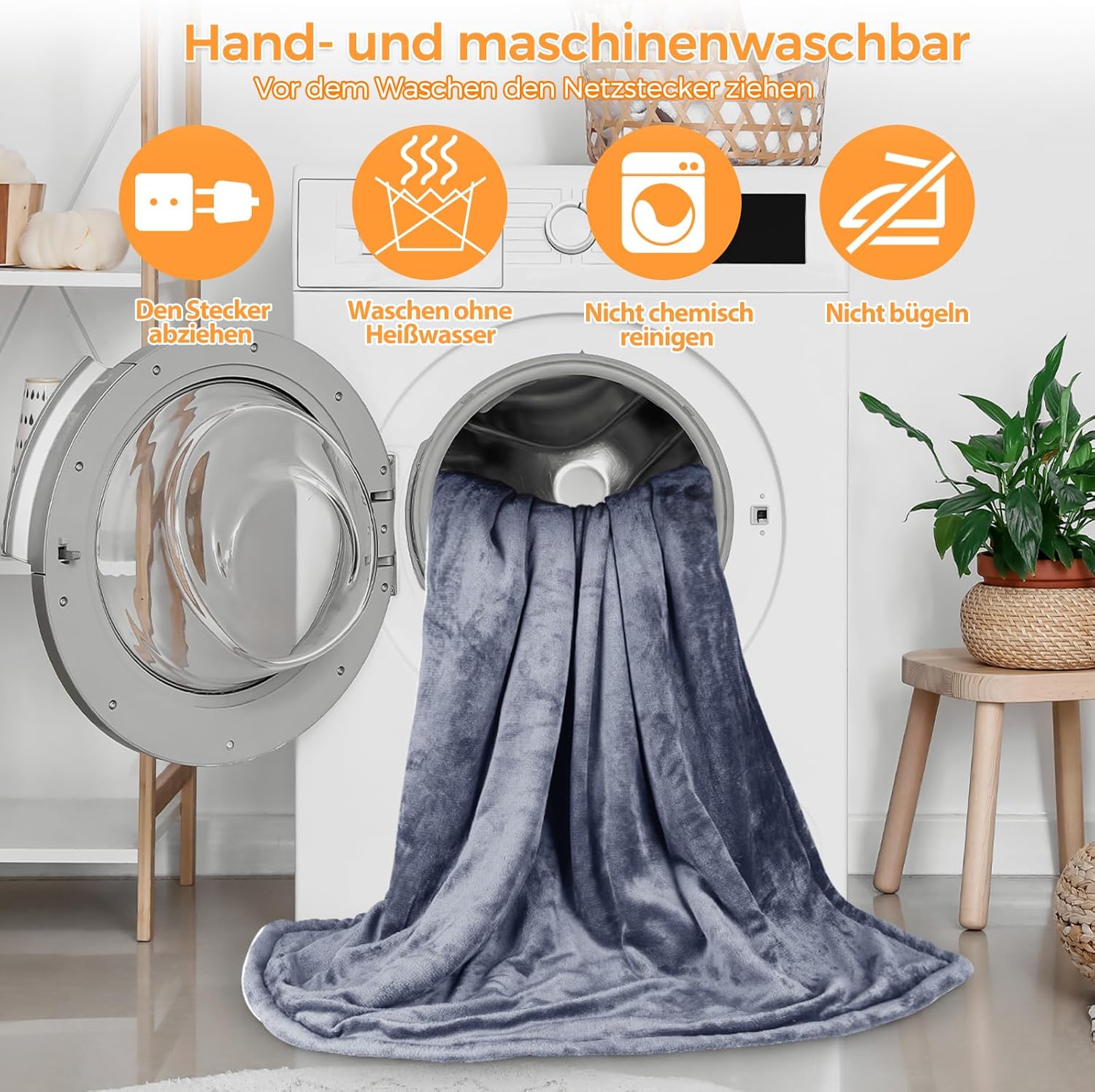 • Може да се пере в пералня: дистанционното управление и кабелът на нашето термоодеяло са напълно свалящи се, което ви позволява лесно да перете електрическото си одеяло в пералня на 38 градуса по Целзий за ваше удобство. Това означава, че можете да се наслаждавате на чистия и свеж мек полар на електрическото термоодеяло в продължение на много години. (Просто се уверете, че дистанционното управление е свалено преди пране)