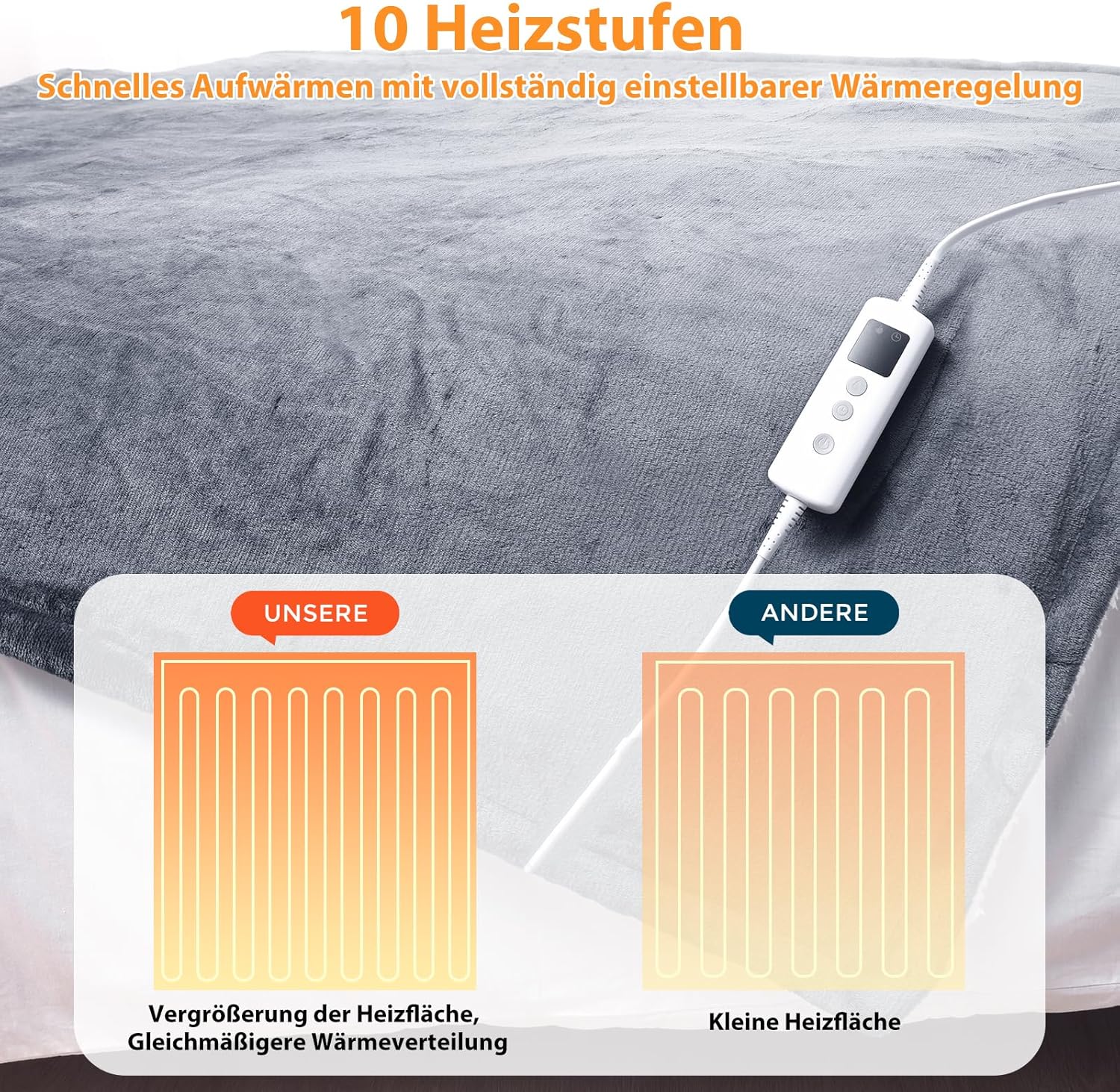 • Таймер от 1 до 9 часа и 10 нива на отопление: Оборудвано с програмируем 9-часов таймер с функция за автоматично изключване, отопляемото одеяло позволява то да се изключи след желания период от време. Идеално, ако заспите или забравите да включите електрическото одеяло от контакта. Електрическото одеяло има 10 регулируеми настройки за топлина, които осигуряват неограничен контрол на температурата за несравним комфорт - независимо от времето.