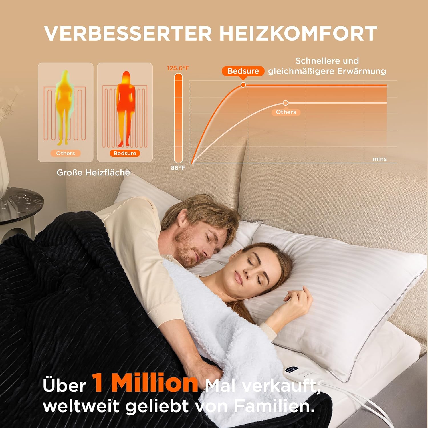 Електрическо одеяло BEDSURE с автоматично изключване 180 x 200 см - Термо одеяло с 6 степени на топлина и 10-часов таймер, защита от прегряване до 8 часа, електрическо пухкаво одеяло за дома и офиса
