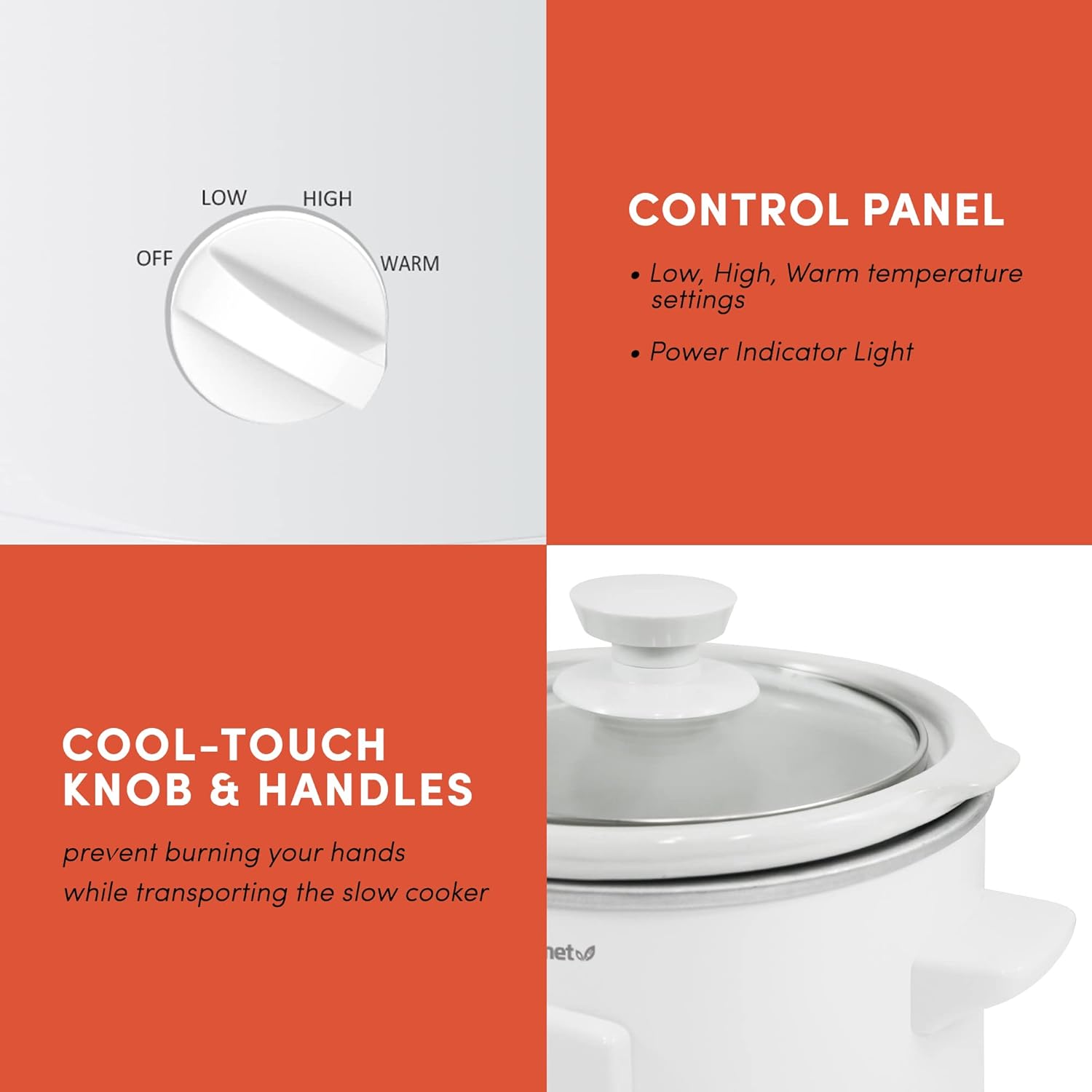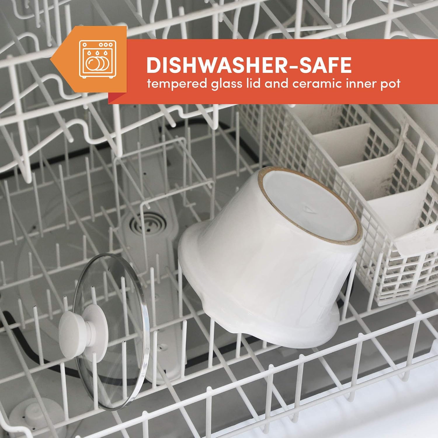 Elite Gourmet MST-250XW# Керамична бавна готварска печка с регулируема температура за предястия, сосове, супи, печени ястия, яхнии и дипове, подходяща за съдомиялна машина (1.7 л, бяла)