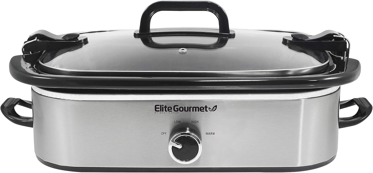 Elite Gourmet MST-5240SS Бавноготвена готварска печка с капак, заключващ се, регулируема температура, поддържа топло, подходяща за фурна и съдомиялна машина, вместимост 3,3 л, неръждаема стомана