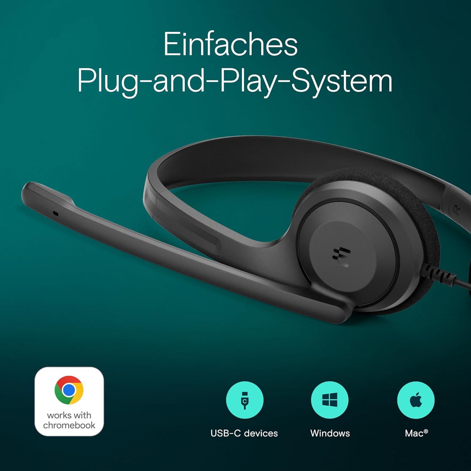 EPOS C1 Business USB-C слушалки с микрофон, сертифицирани с Chrome, кабелни слушалки, шумопотискане, подобрено качество на звука, свързаност за съвременни устройства, леки