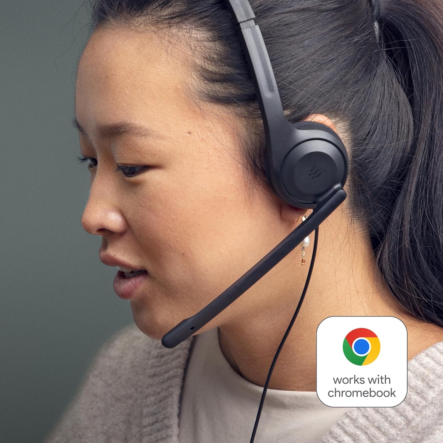 • СТЕРЕО СЛУШАЛКИ С МИКРОФОН - Два наушника осигуряват фокусиран стерео звук за онлайн срещи, VoIP, уебинари, дистанционно обучение и домашен офис.