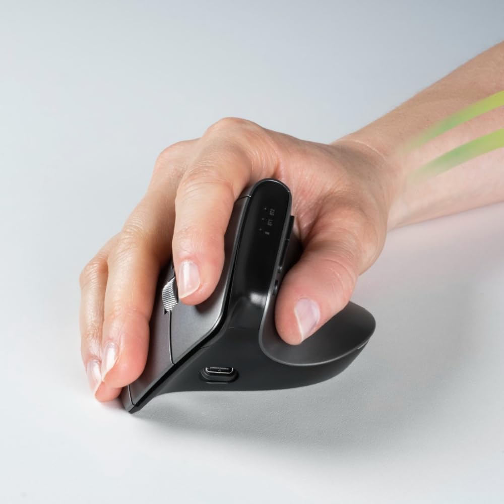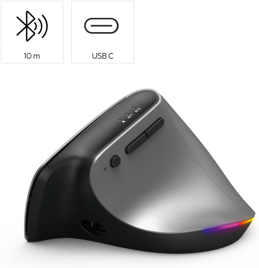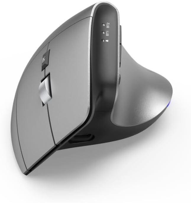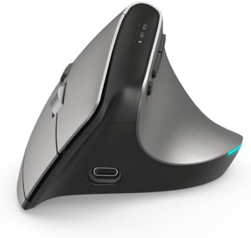 Ергономична мишка Hama EMW-700, 2.4 GHz + 2x BT 4.2 (Вертикална безжична мишка за три устройства, вертикална мишка с акумулаторна батерия, DPI 1000, 1600, 2400, 8 бутона, предотвратява накланянето на мишката) Антрацит
