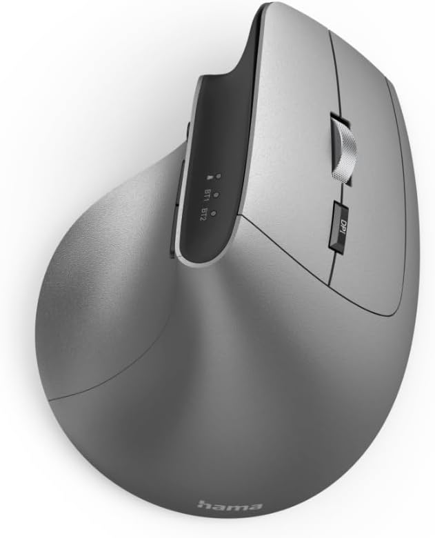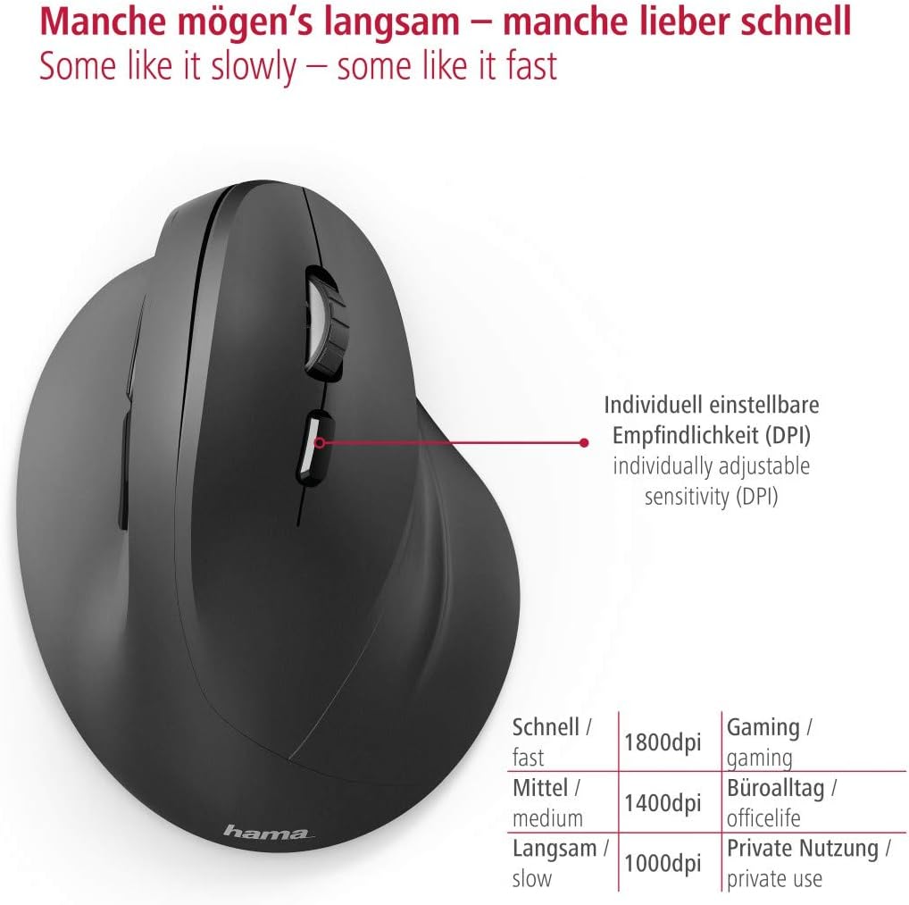 Ергономична мишка Hama (вертикална безжична мишка за десничари, 3 нива на скорост до 1800dpi, срещу синдром на тенис лакът I и RSI, безжична мишка) черна