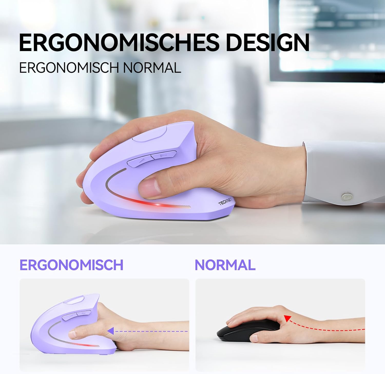 Ергономична мишка TECKNET, безжична Bluetooth вертикална мишка (BT 5.0 + BT 3.0 + 2.4G), 6 нива на регулиране до 4800 DPI, оптична тиха безжична мишка за лаптоп/PC/Mac/таблет/iPad (Win/Android/iOS) 6