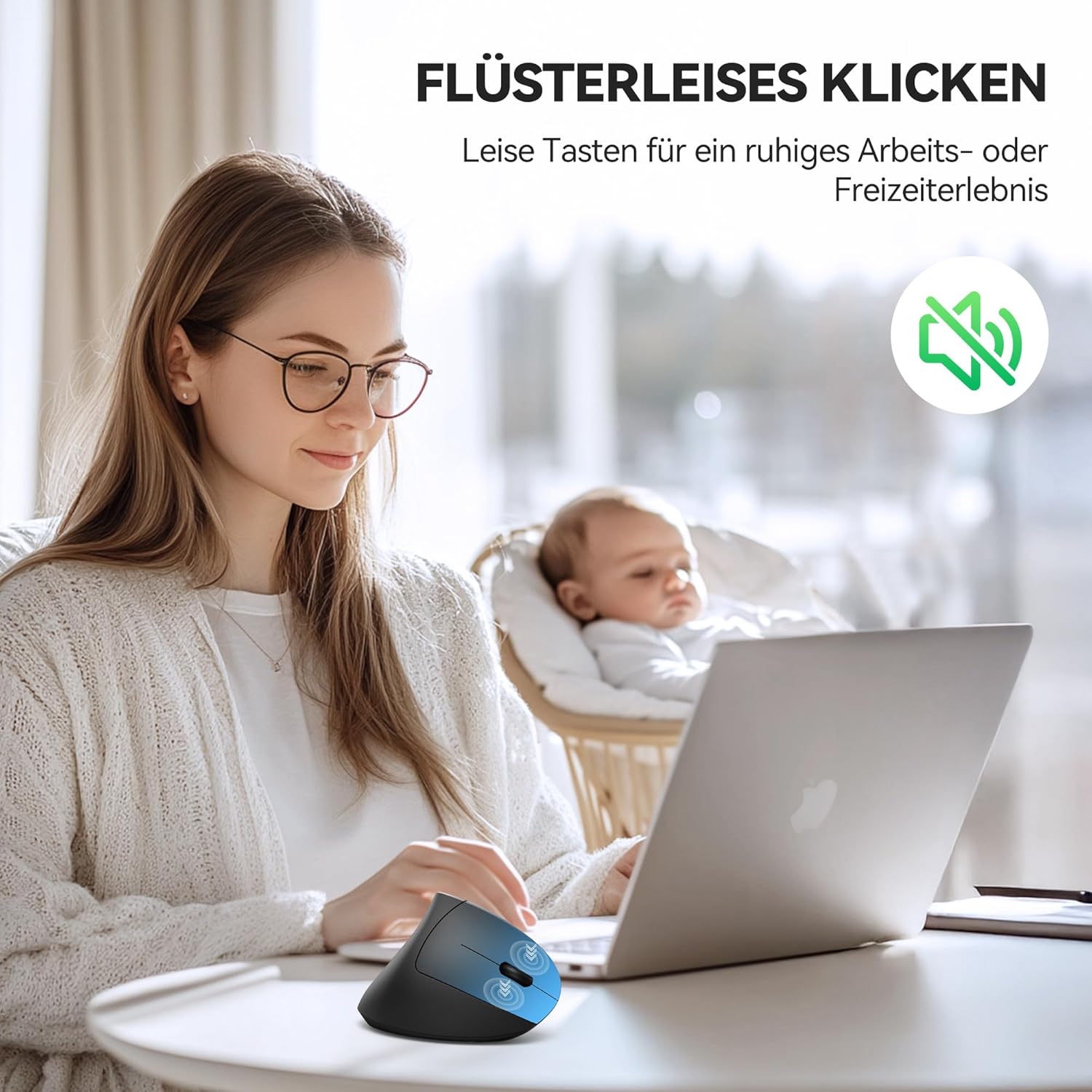 • Безшумна мишка: Тази компютърна мишка работи безшумно, така че може да се използва и в тихи среди, като например библиотеки. Освен това, вертикалната мишка осигурява почти безшумни кликвания, което помага да се предотврати безпокойството на другите и вие можете да работите или учите необезпокоявано (Забележка: само левият и десният бутон на мишката са безшумни; другите функционални клавиши не са безшумни)