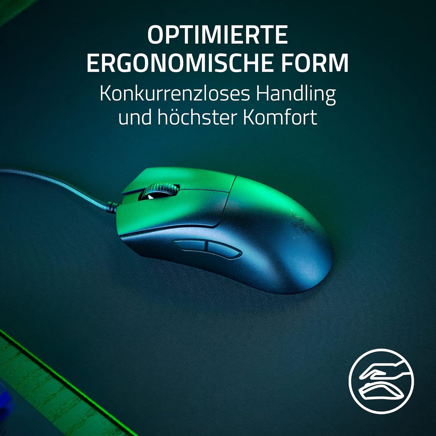 Die Razer DeathAdder Essential verfügt über einen bewährten optischen Sensor mit echten 6.400 DPI für schnelle und präzise Mausbewegungen.