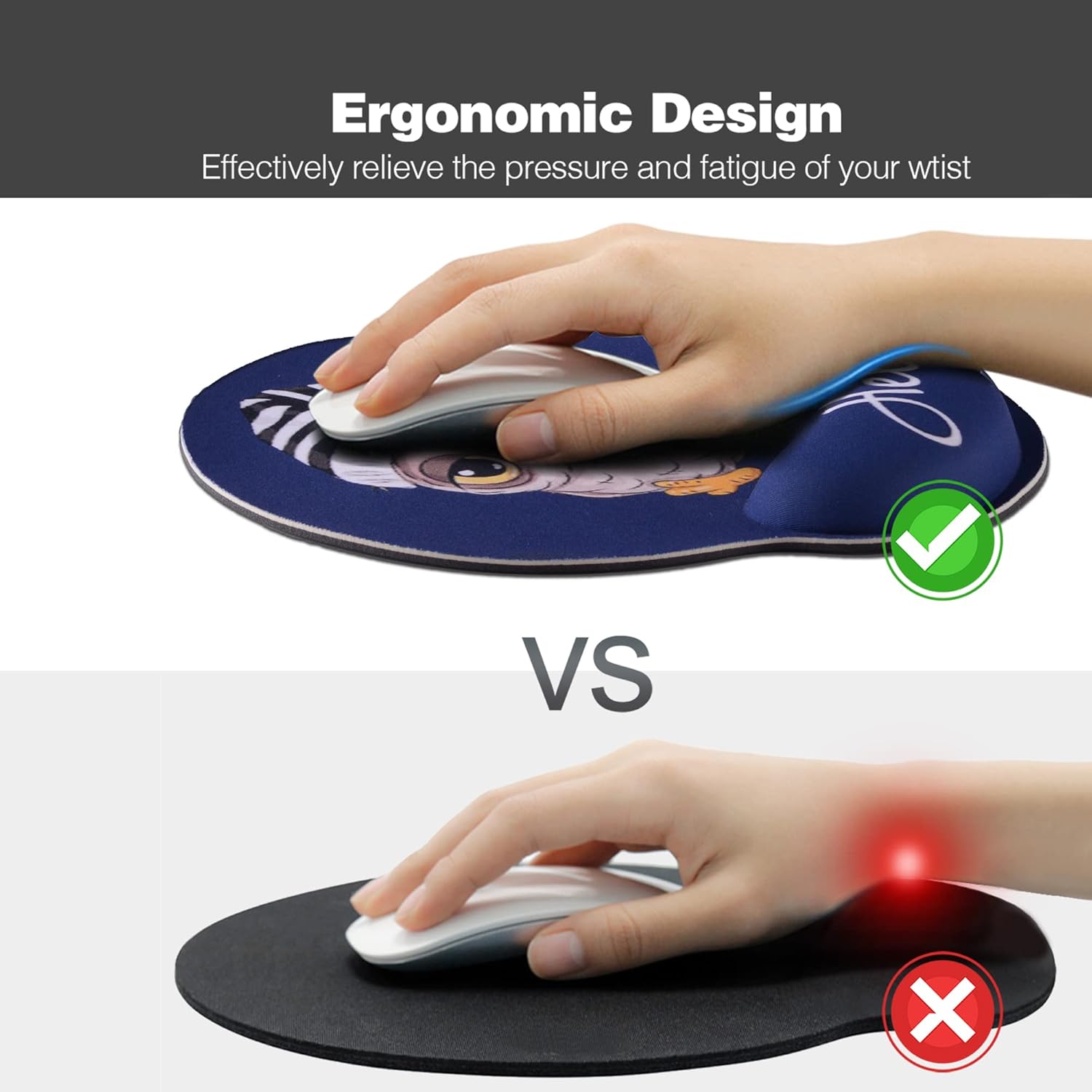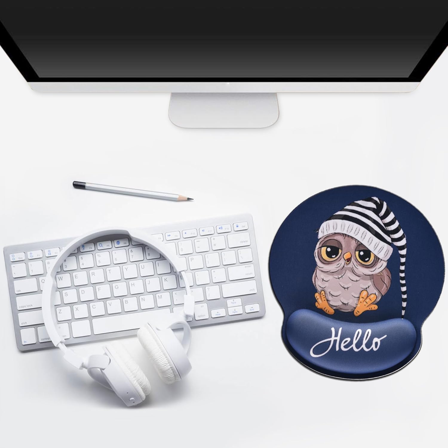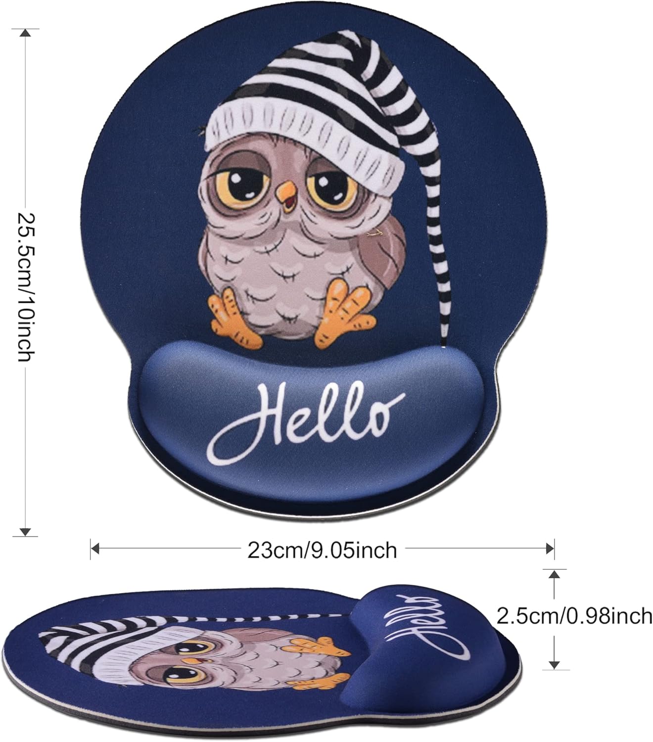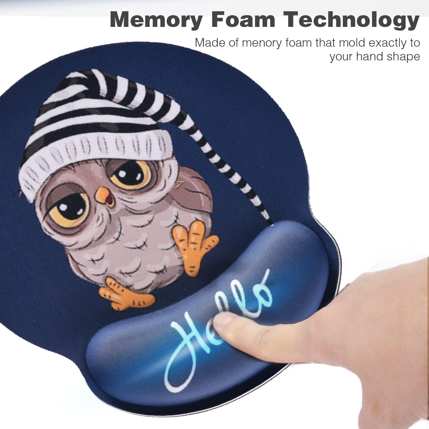 Ергономична подложка за мишка с мемори пяна, неплъзгаща се гумена основа за лаптоп, игри и офис - Сладка сова