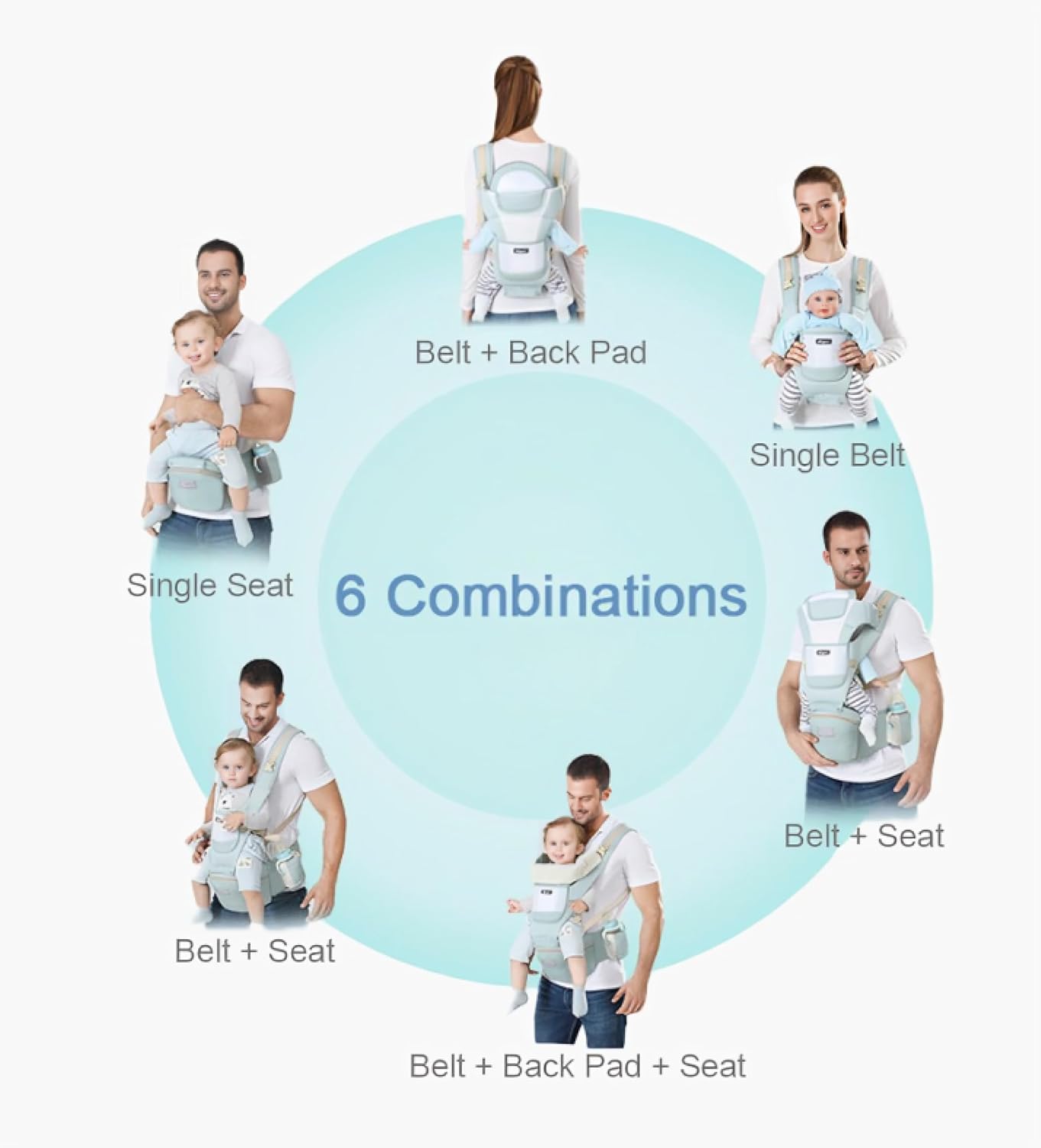 【Свободни ръце докато носите бебето си】Бебешката ергономична раница 6 в 1 е идеалното решение, за да имате свободни ръце, докато се грижите за детето си в натоварения си живот или докато пътувате. Предлага се в 3 комбинации и 6 стила на носене за бебета от 0 до 36 месеца. Можете да я използвате по различни начини в зависимост от растежа на детето ви и нуждите ви при пътуване. Тя е идеална за носене на детето ви в движение или за ежедневна употреба! 【Проектирано за здравословен растеж на бебето】Н