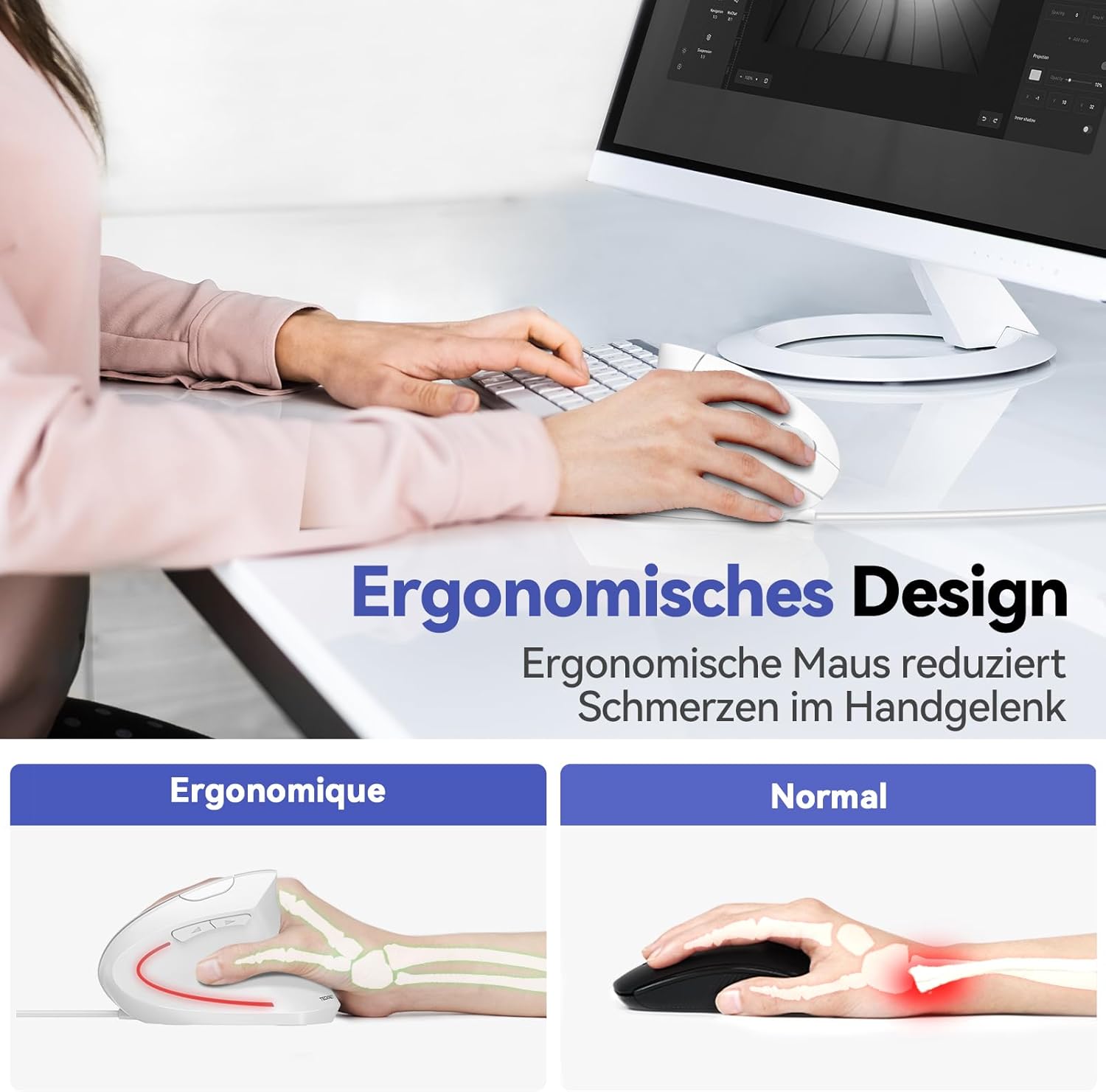 • Ергономичен дизайн: тази вертикална мишка предпазва от претоварване и болка. Ергономичният дизайн осигурява естествен ъгъл от 60° между ръката и китката.