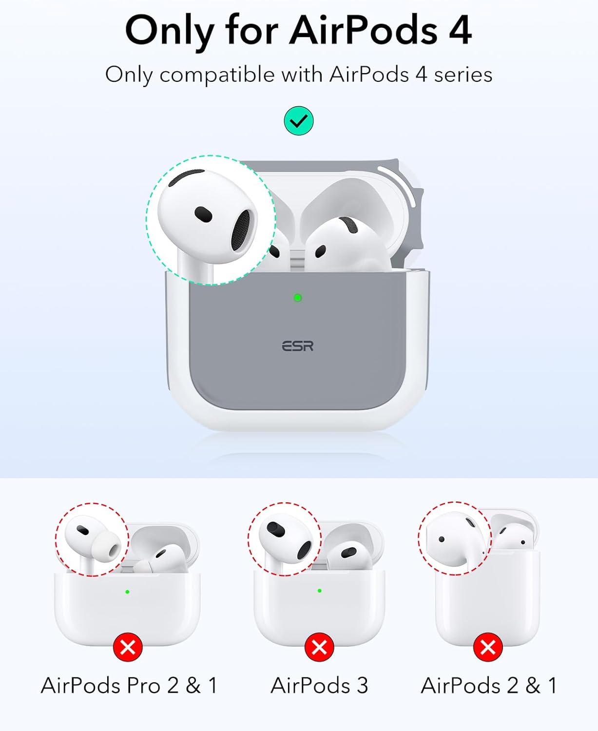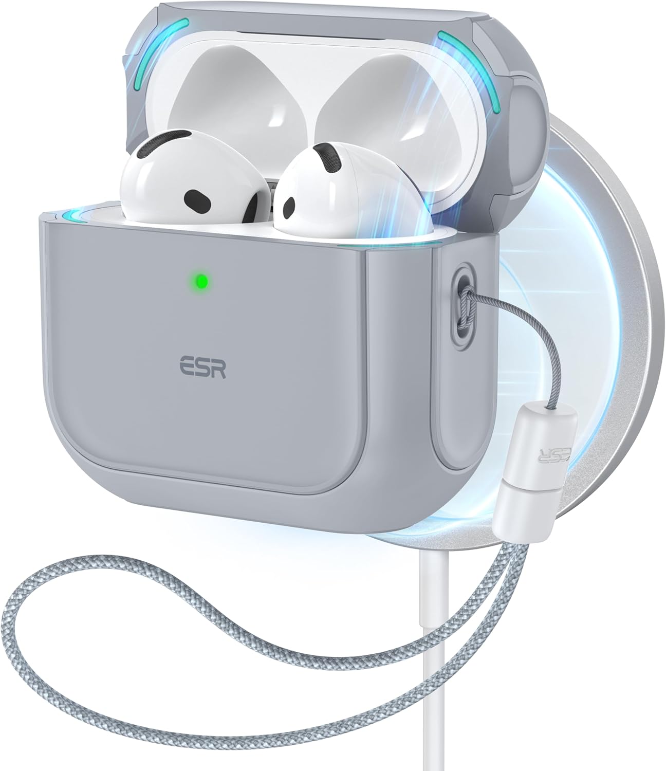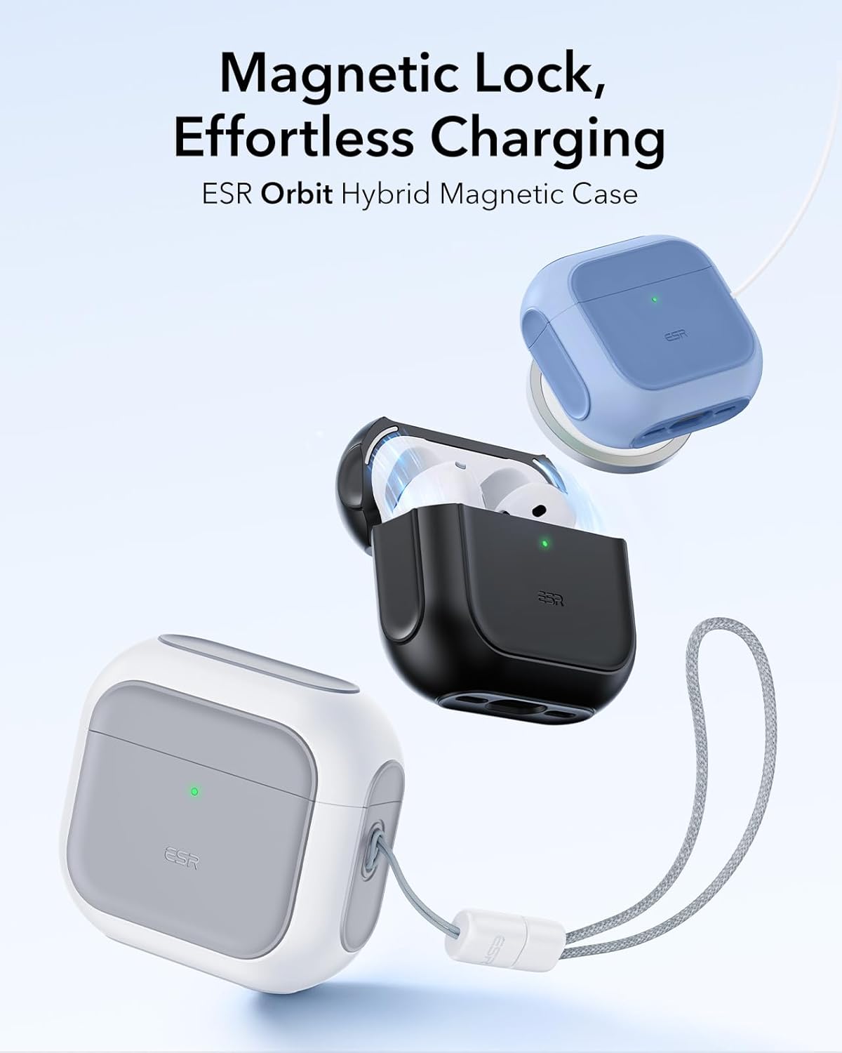 ESR калъф за AirPods 4, съвместим с AirPods 4 Gen (2024) (USB-C), поддържа безжично зареждане, защитен калъф с каишка за китка, магнитен капак, хибриден калъф Orbit, бял