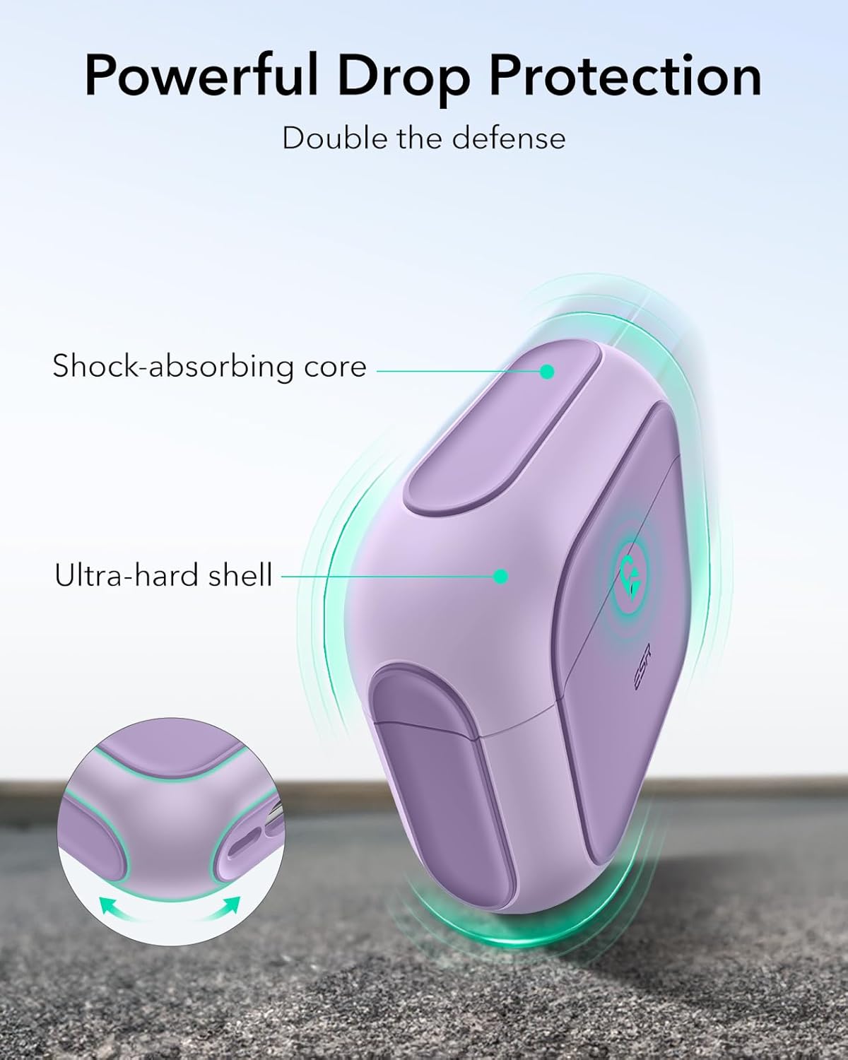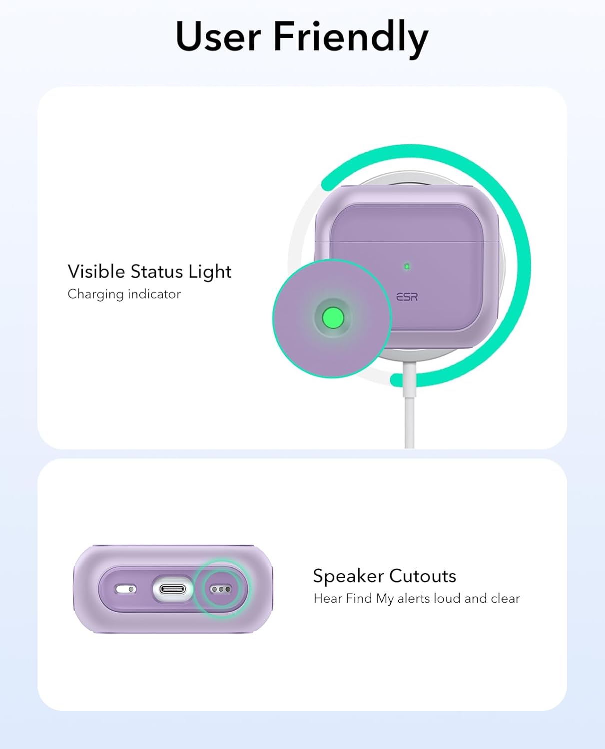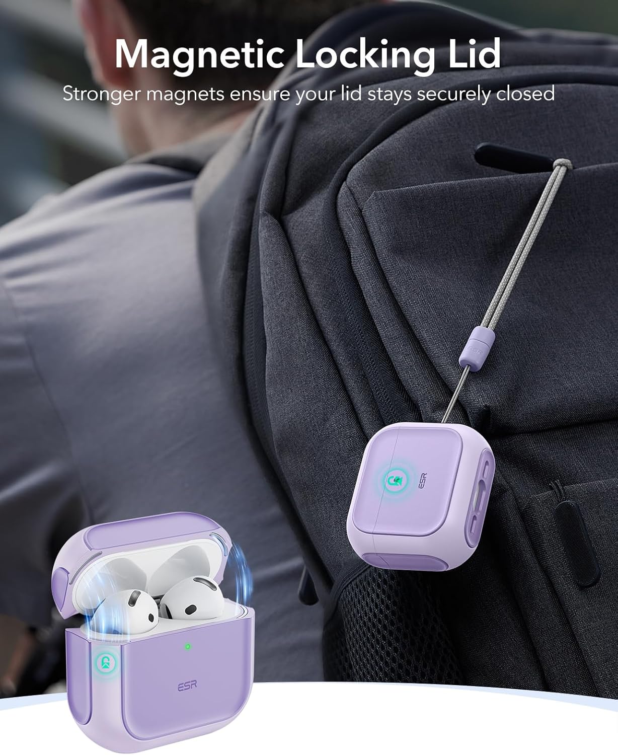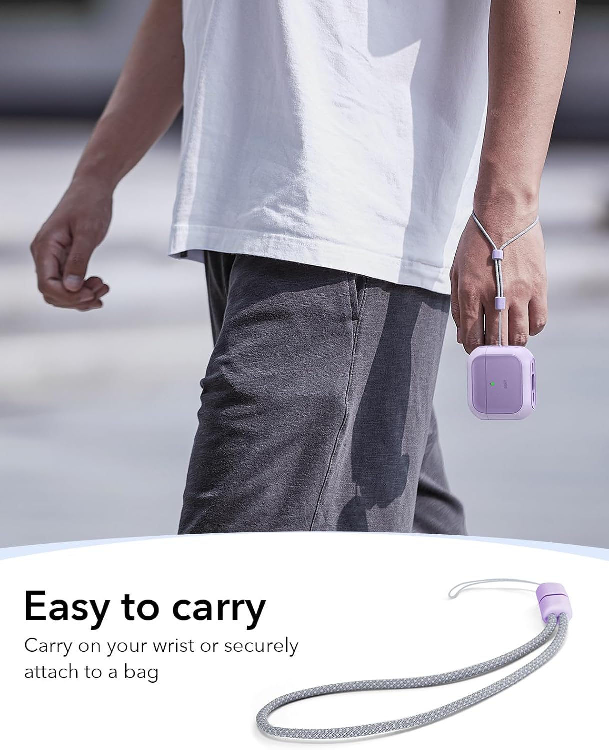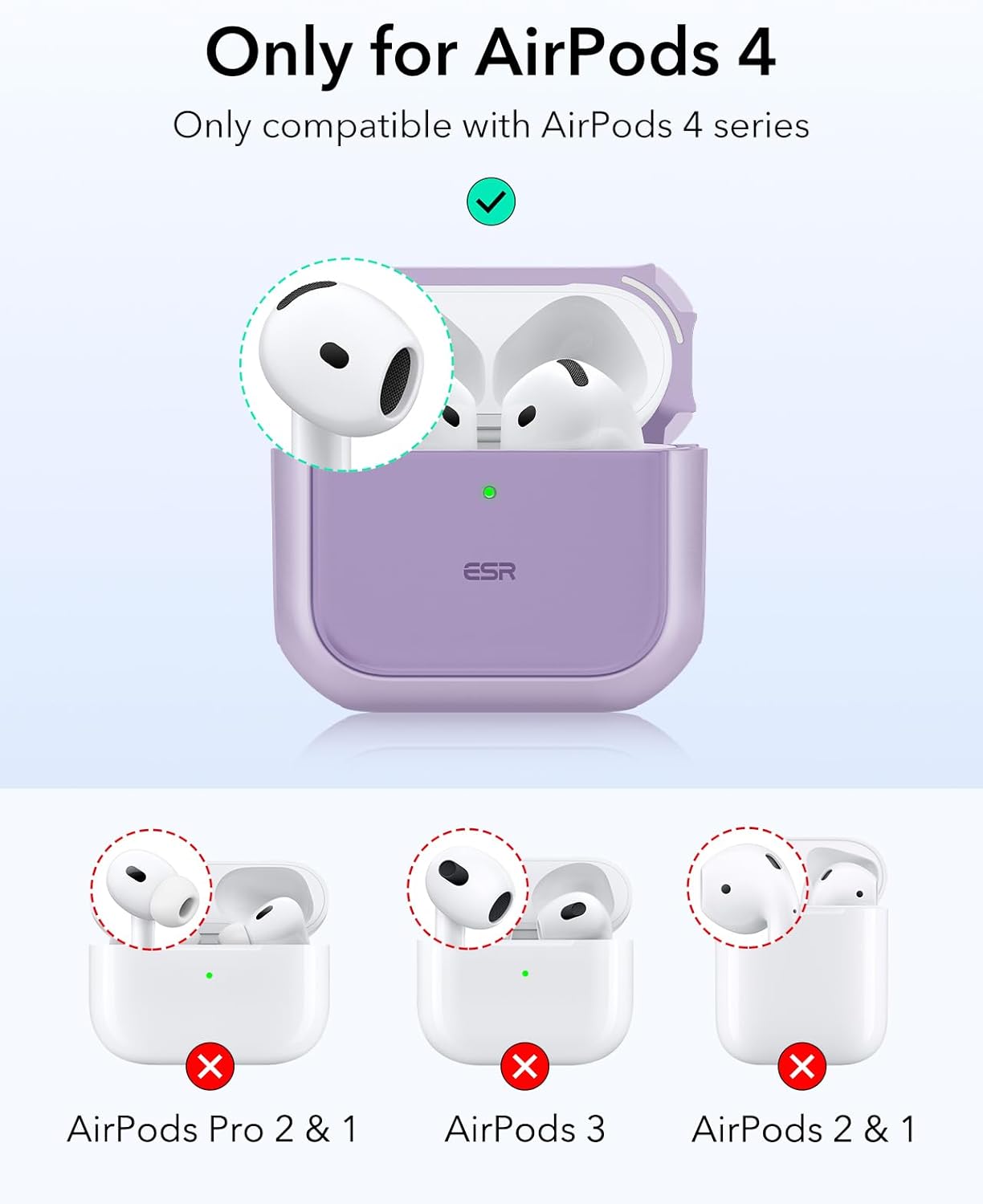 ESR калъф за AirPods 4, съвместим с AirPods 4 Gen (2024) (USB-C), поддържа безжично зареждане, защитен калъф с каишка за китка, магнитен капак, хибриден калъф Orbit, лилав