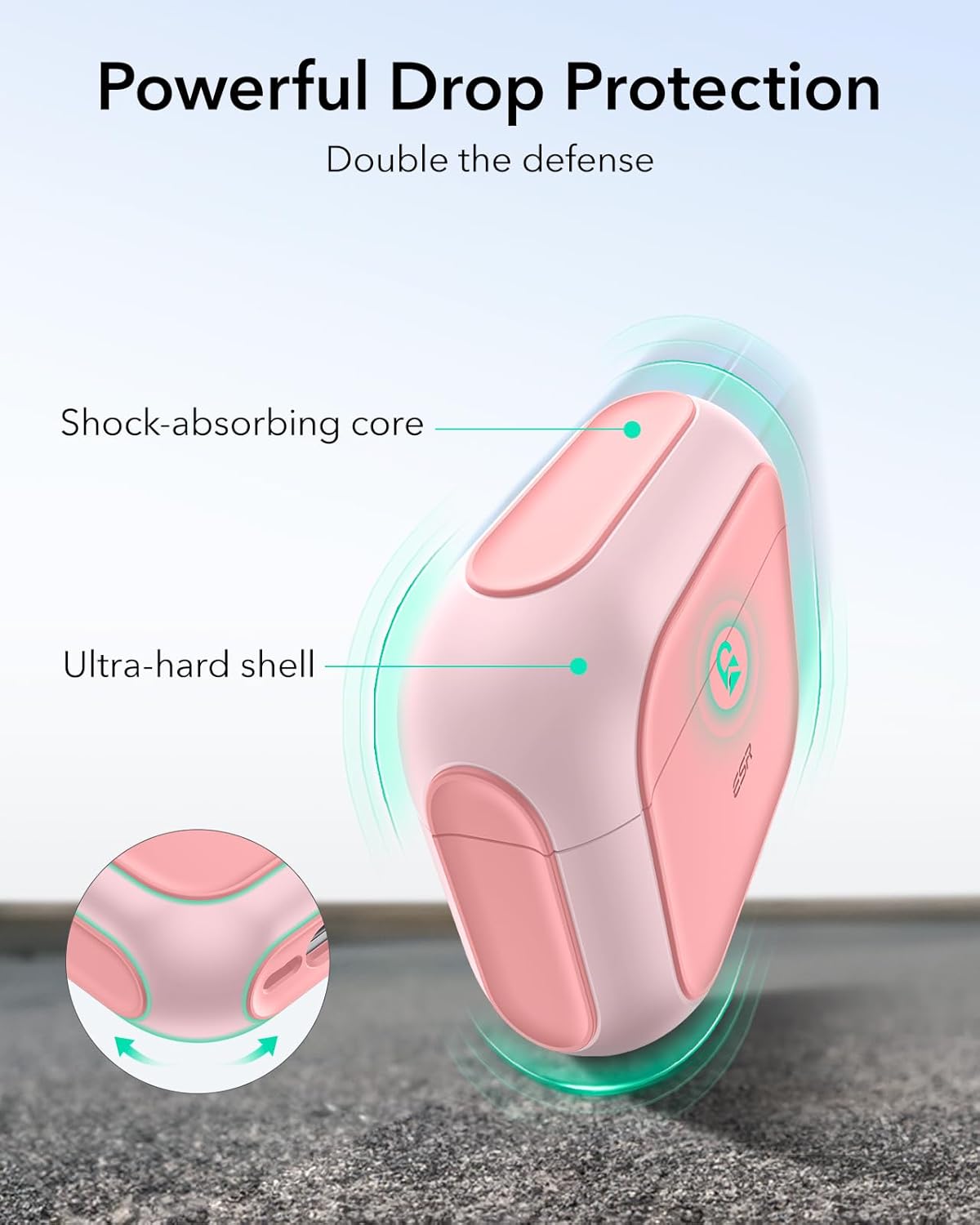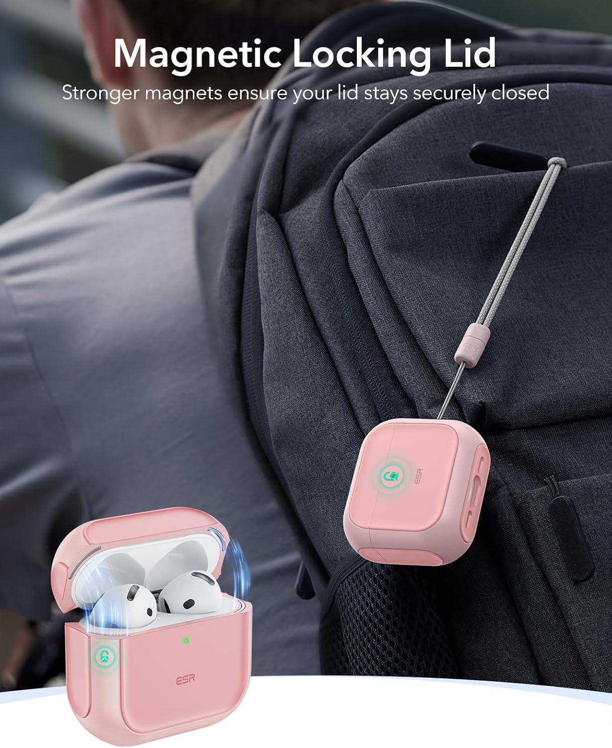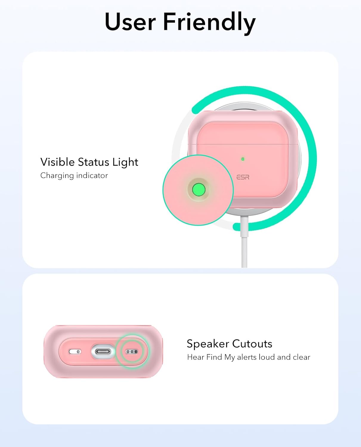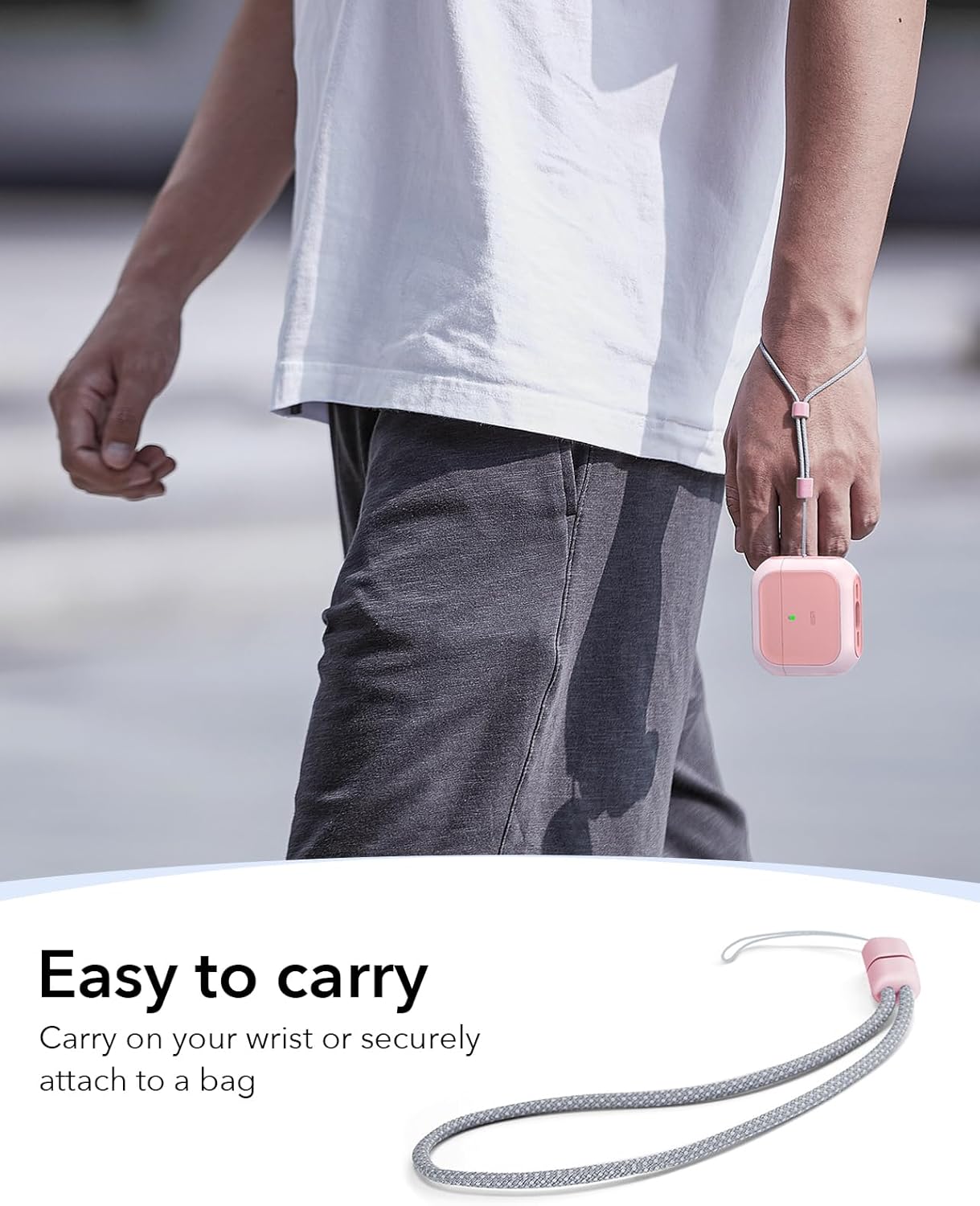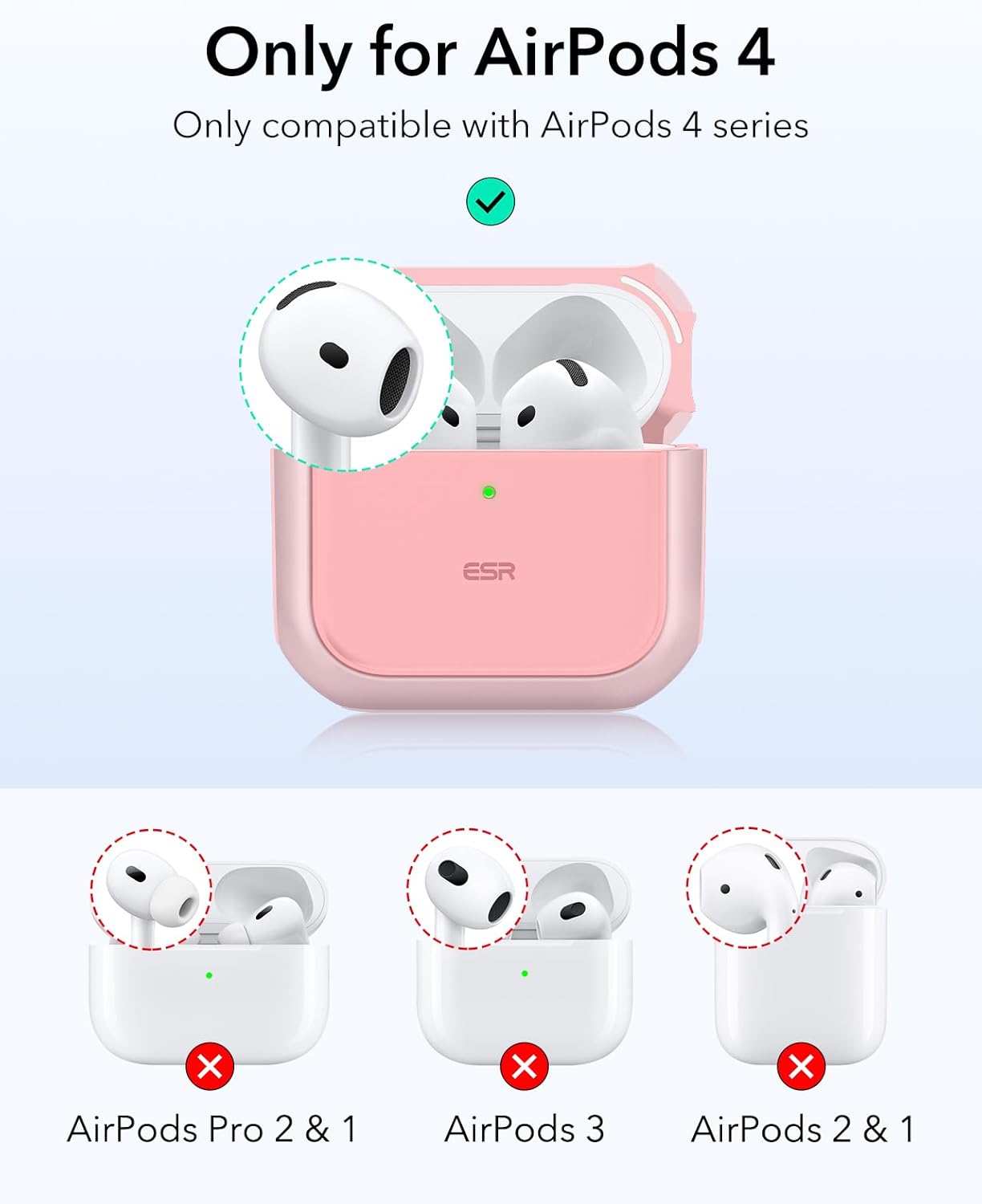 ESR калъф за AirPods 4, съвместим с AirPods 4 Gen (2024) (USB-C), поддържа безжично зареждане, защитен калъф с каишка за китка, магнитен капак, хибриден калъф Orbit, розов