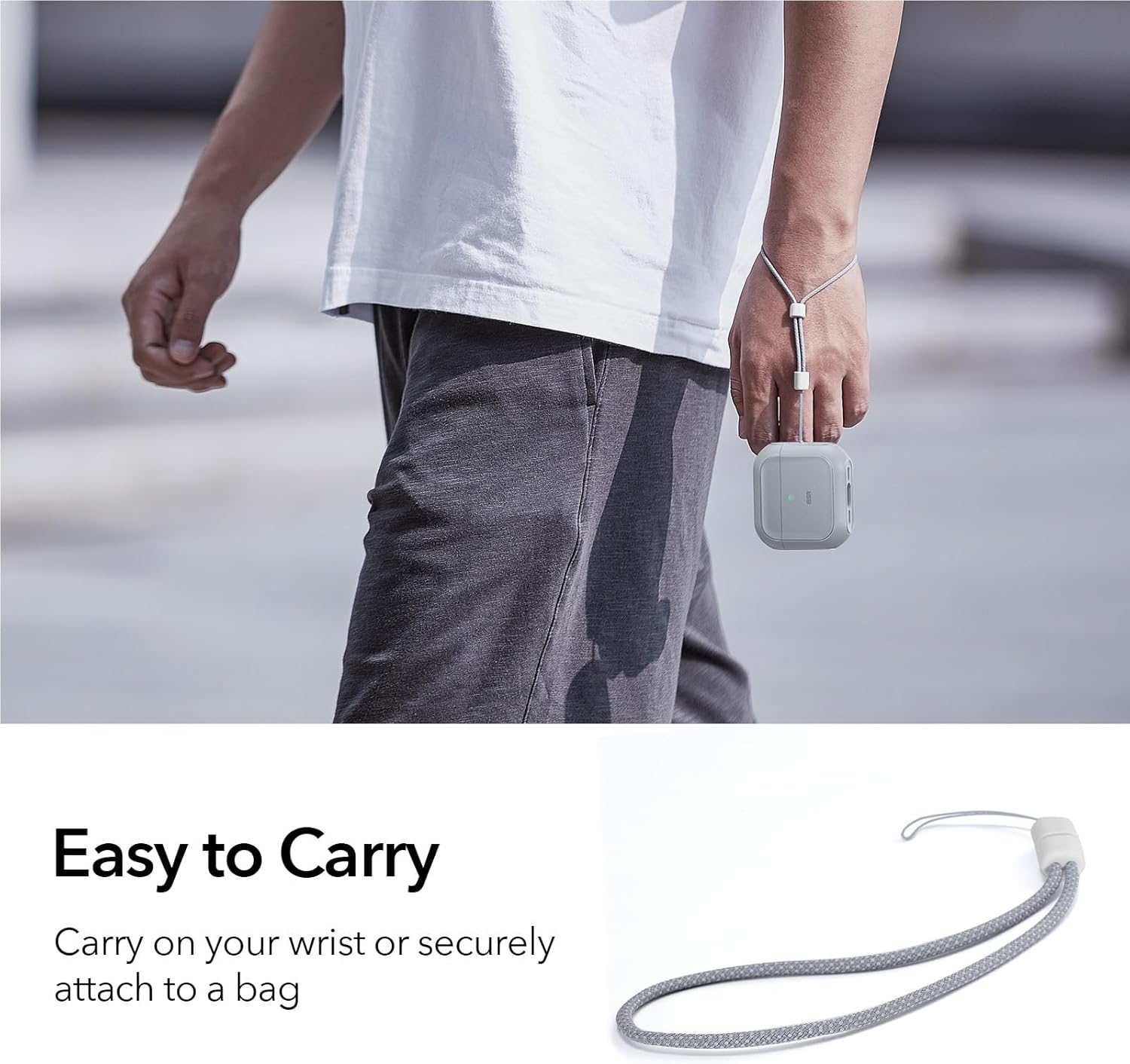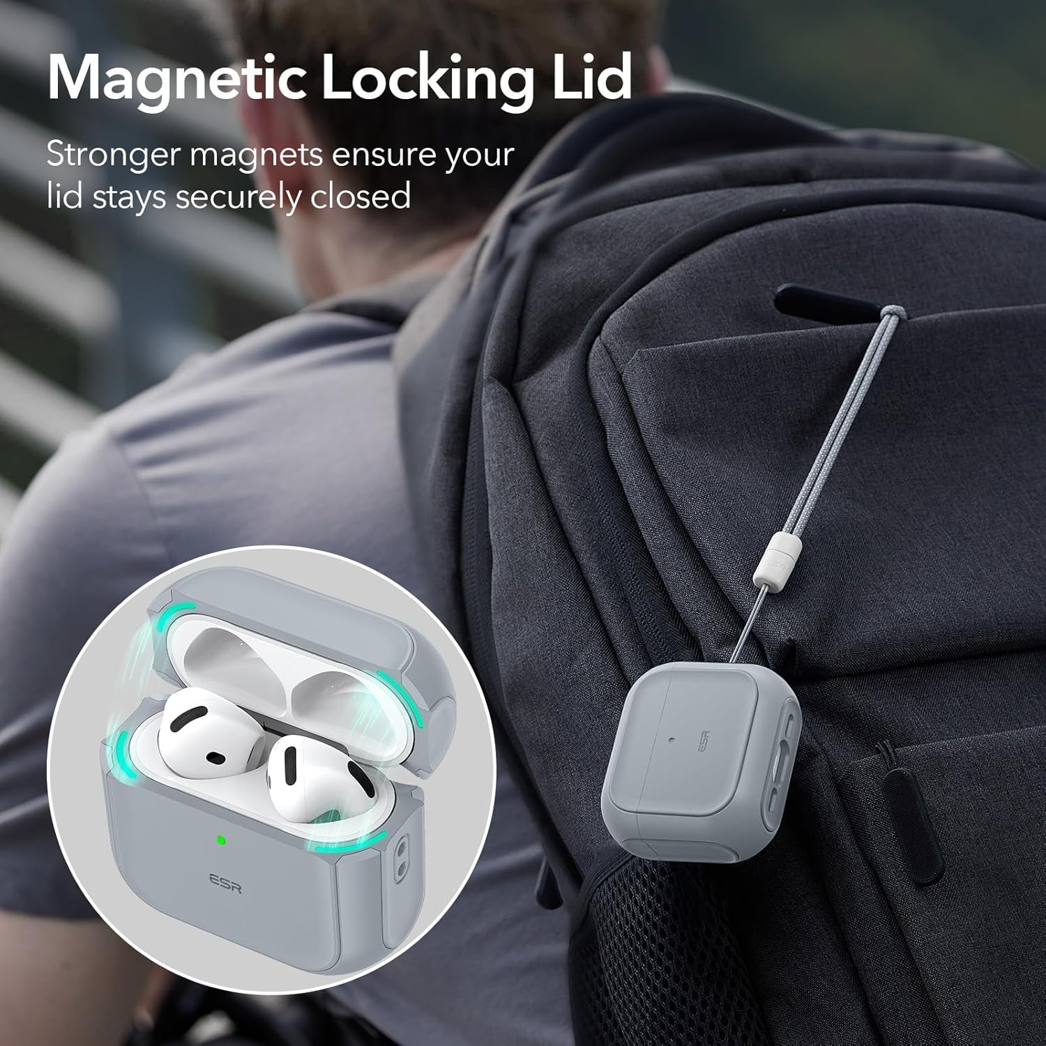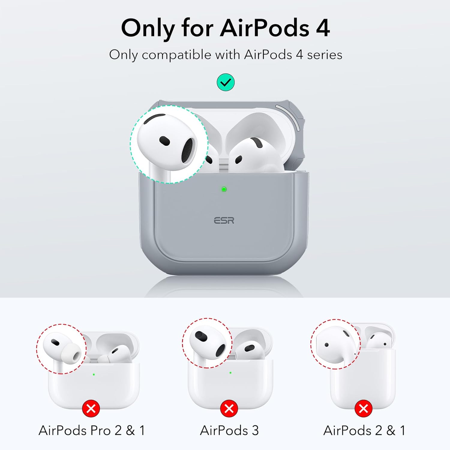ESR калъф за AirPods 4, съвместим с AirPods 4 Gen (2024) (USB-C), поддържа безжично зареждане, защитен калъф с каишка за китка, магнитен капак, хибриден калъф Orbit, сив