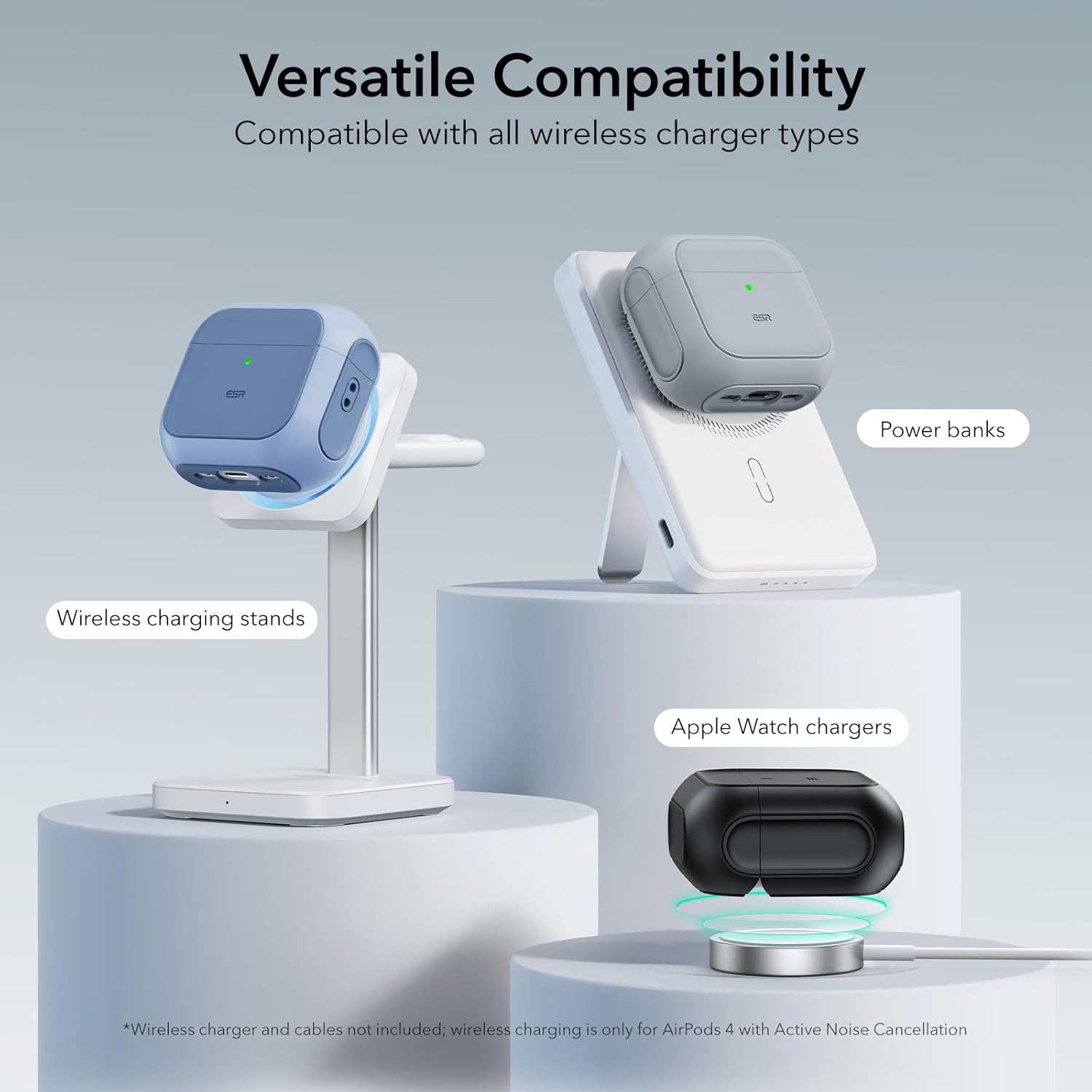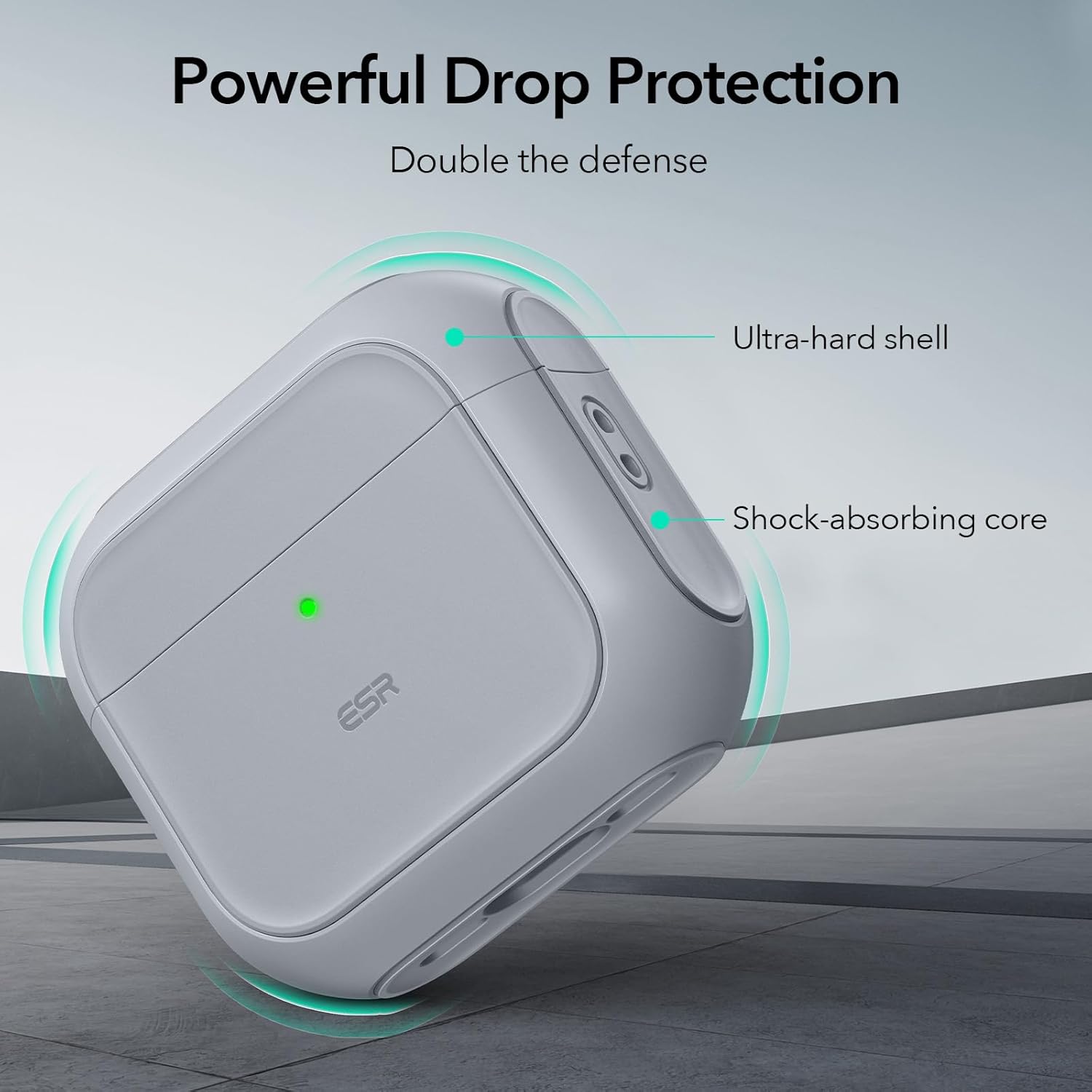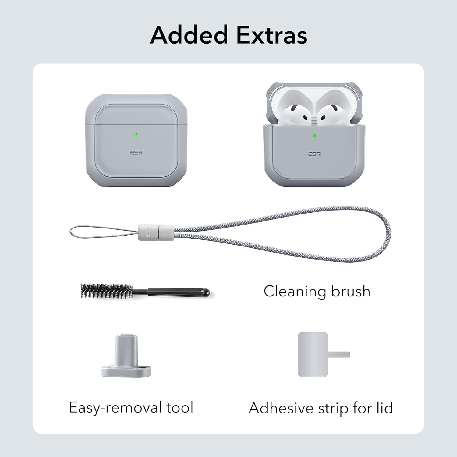 ESR калъф за AirPods 4, съвместим с AirPods 4 Gen (2024) (USB-C), поддържа безжично зареждане, защитен калъф с каишка за китка, магнитен капак, хибриден калъф Orbit, сив