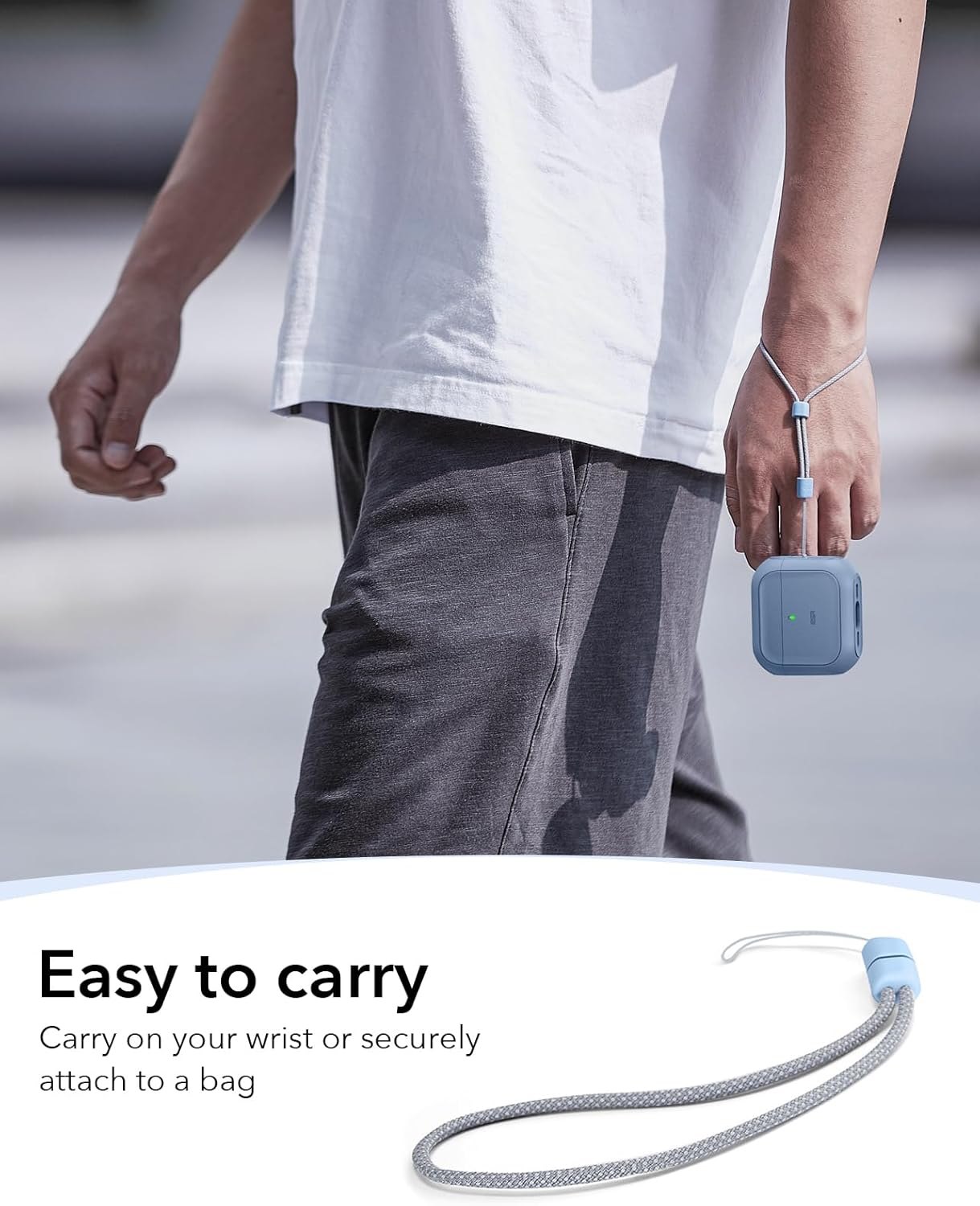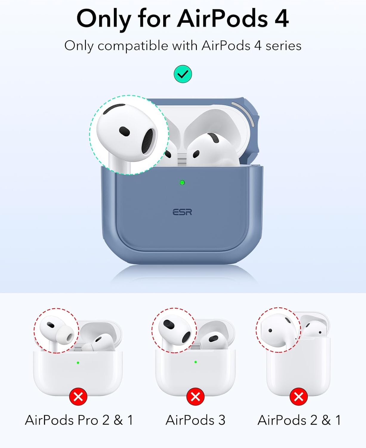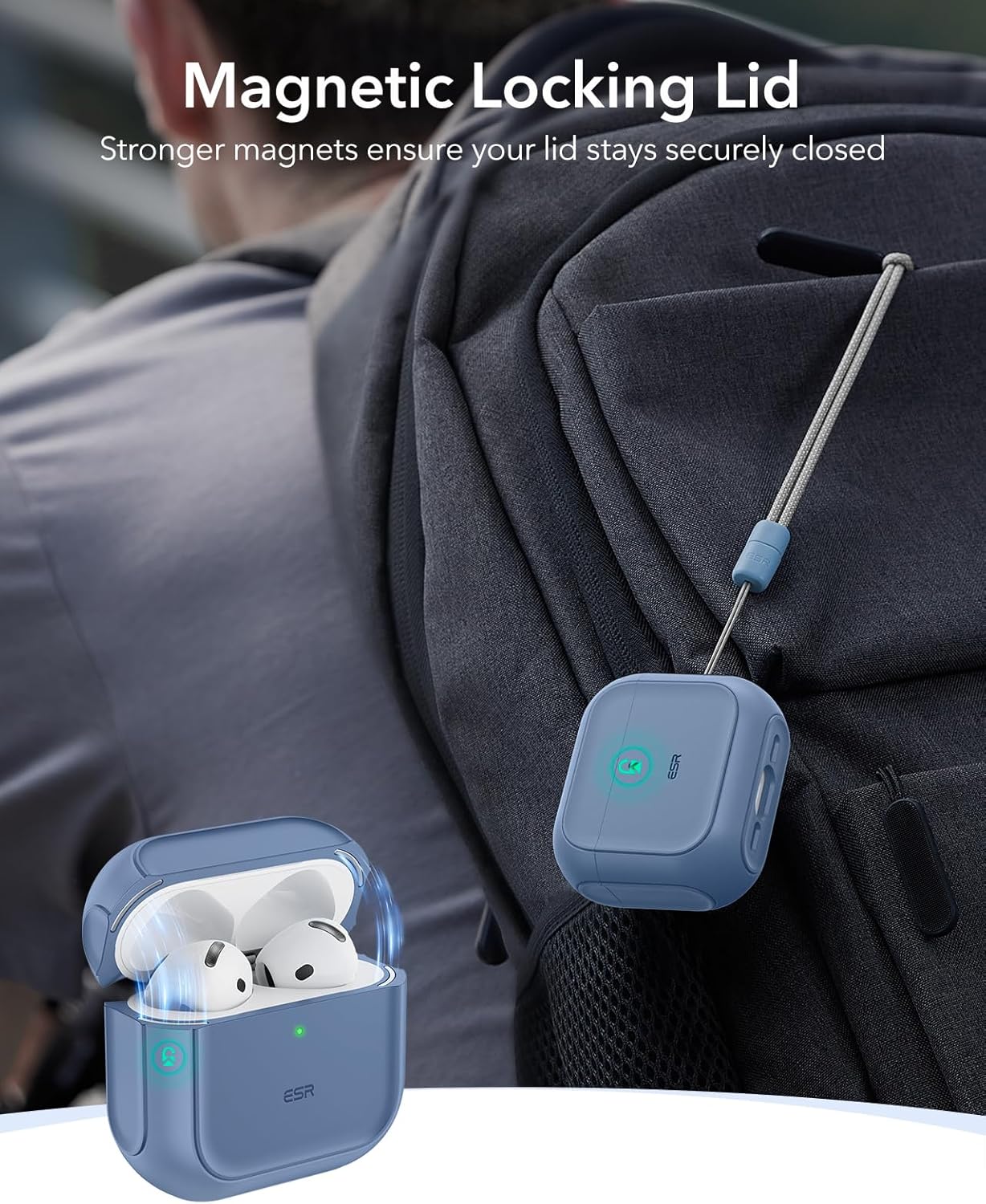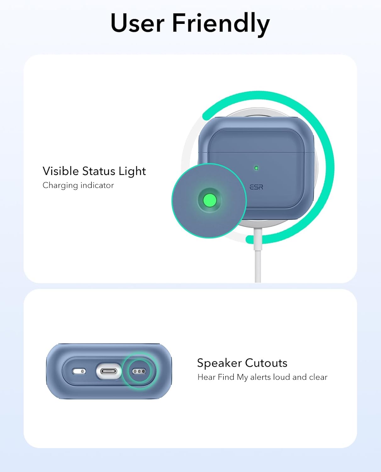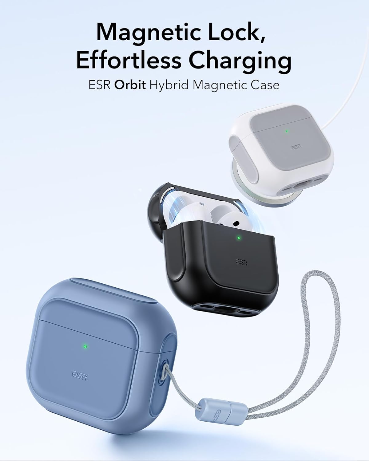 ESR калъф за AirPods 4, съвместим с AirPods 4 Gen (2024) (USB-C), поддържа безжично зареждане, защитен калъф с каишка за китка, магнитен капак, хибриден калъф Orbit, тъмносин