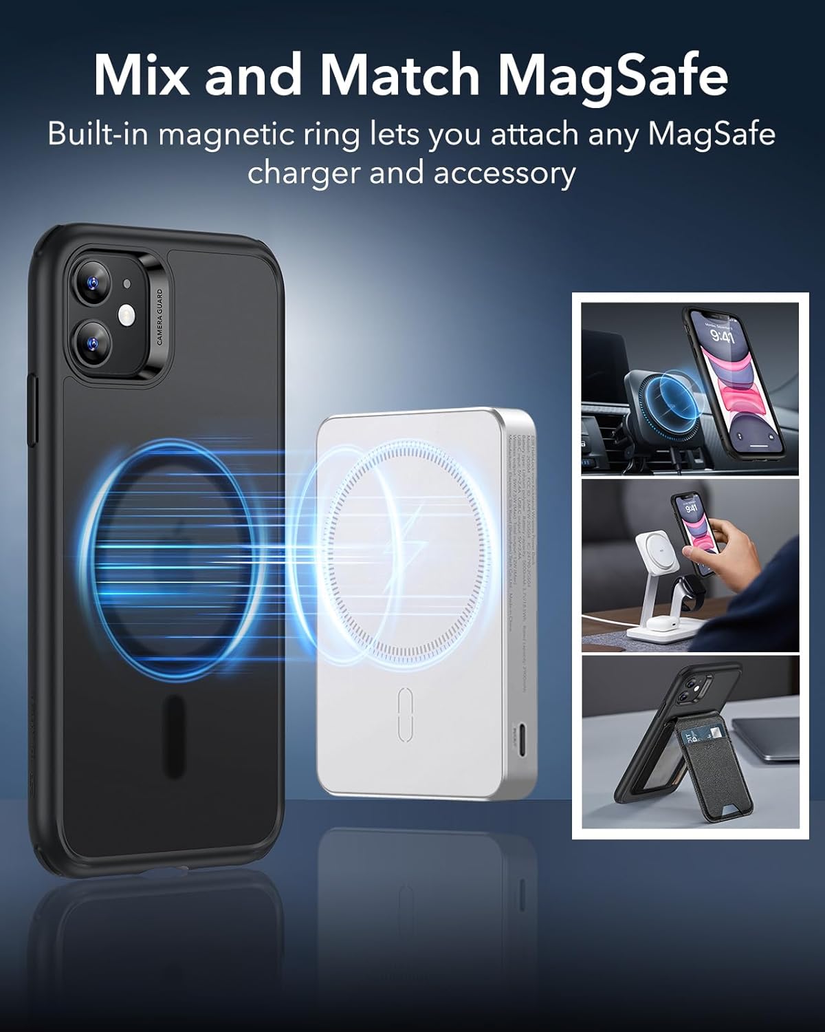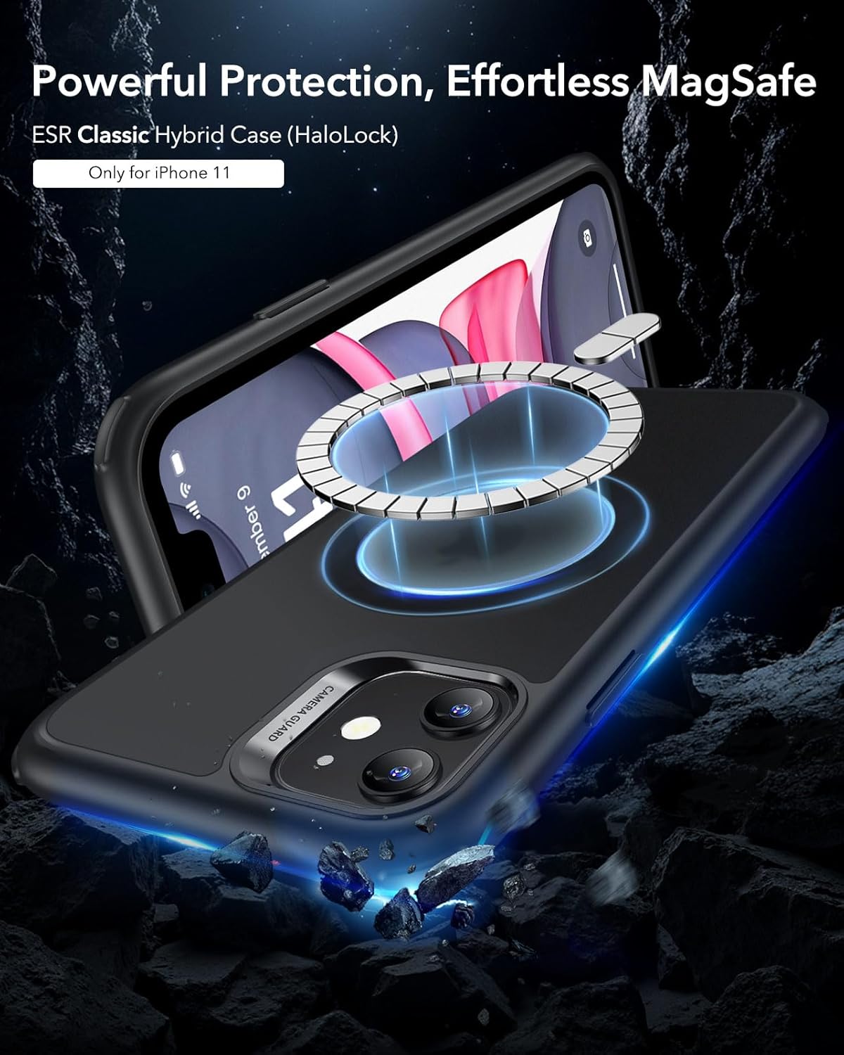 ESR калъф за iPhone 11, съвместим с MagSafe, класически хибриден магнитен калъф за мобилен телефон за iPhone 11, военен стандарт, защита от падане, устойчив на надраскване гръб, матово черен