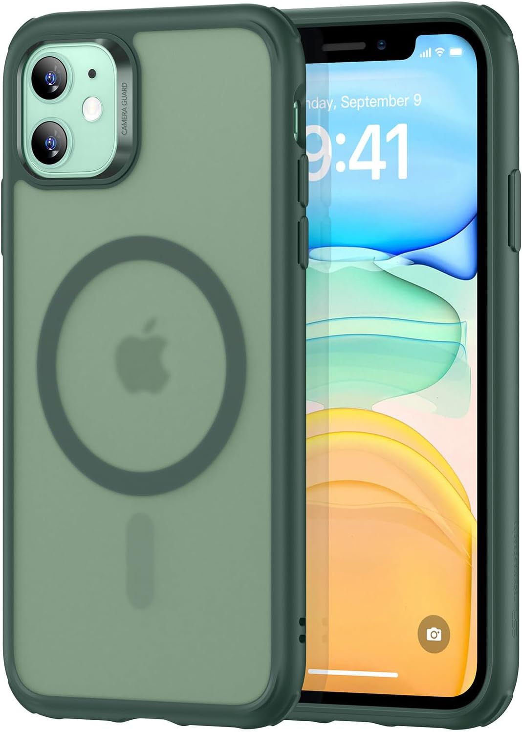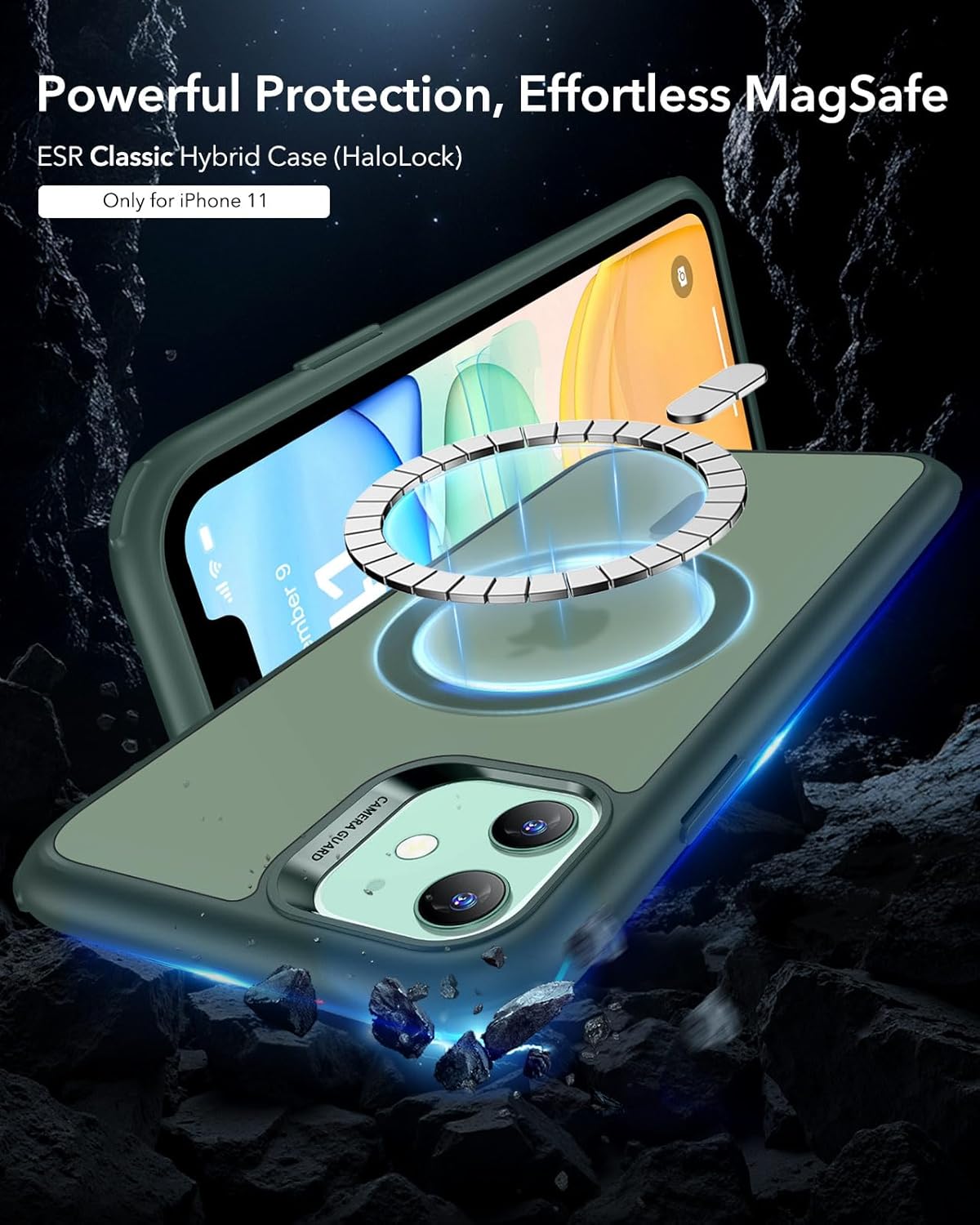 ESR калъф за iPhone 11, съвместим с MagSafe, класически хибриден магнитен калъф за мобилен телефон за iPhone 11, военен стандарт, защита от падане, устойчив на надраскване гръб, матово зелен