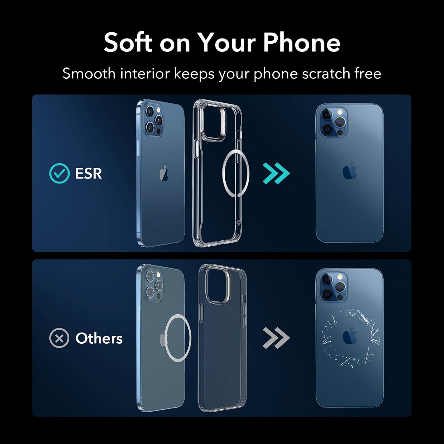 ESR калъф за iPhone 12 Pro Max, съвместим с MagSafe, класически хибриден магнитен калъф за мобилен телефон за iPhone 12 Pro Max, военен стандарт, защита от падане, устойчив на надраскване гръб, прозрачен