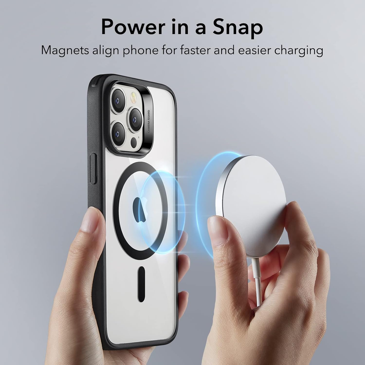 • Магнитна сила от 1500 g - ултрастабилни: Нашите специални магнити с водеща в индустрията сила на задържане от 1500 g закрепват аксесоарите MagSafe за мобилен телефон iPhone 17 Pro дори по време на дейности на открито - независимо дали става въпрос за бягане по пътеки, стълбове и камъни или за неравни пътища. Магнитният композит е толкова стабилен, че зарядните устройства, дръжките или държачите не се плъзгат дори при най-силните удари, като същевременно позволяват лесно отстраняване с лек натиск.