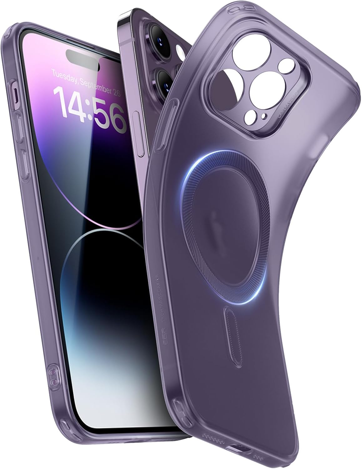 ESR калъф за iPhone 14 Pro, прозрачен силиконов калъф с MagSafe, удароустойчив тънък капак, устойчив на пожълтяване тънък прозрачен TPU калъф за мобилен телефон, серия Zero, прозрачно лилаво