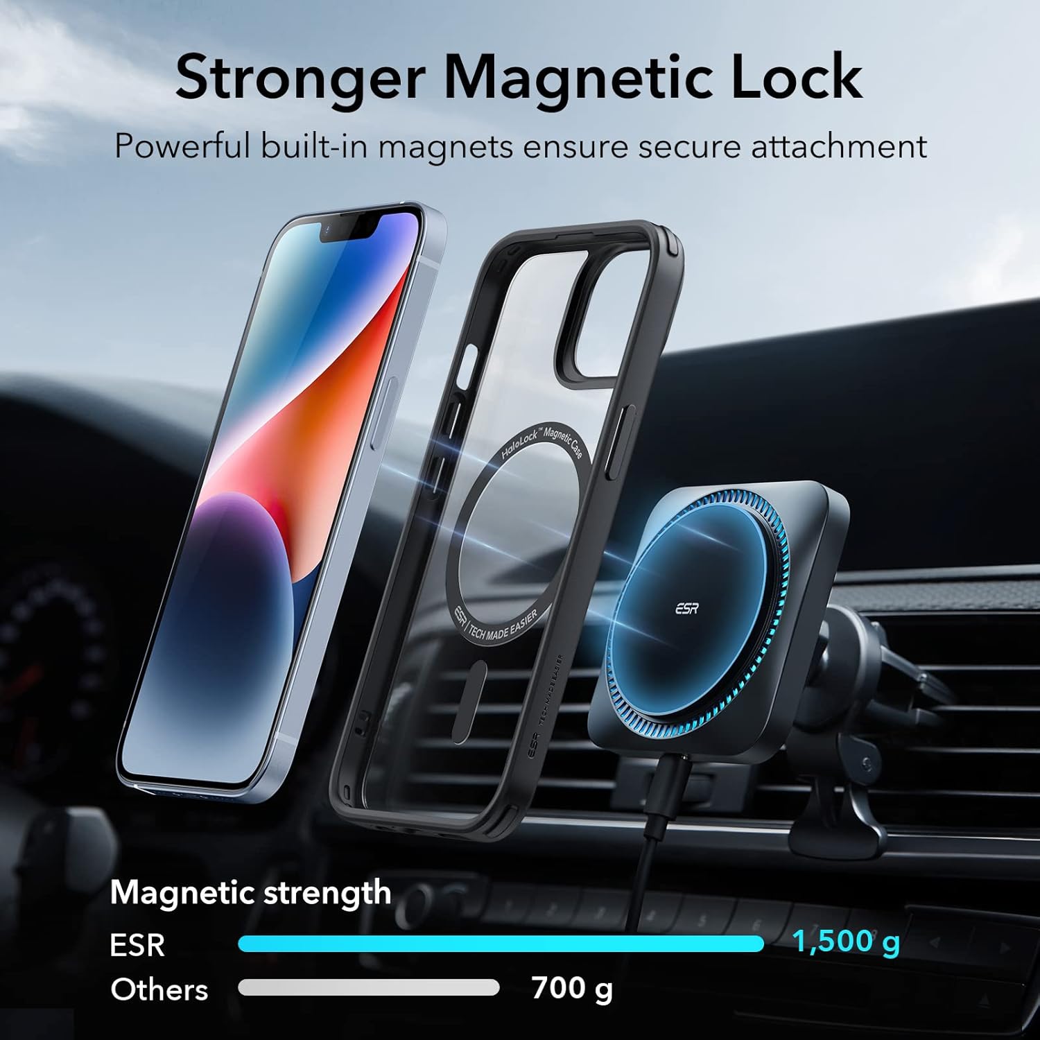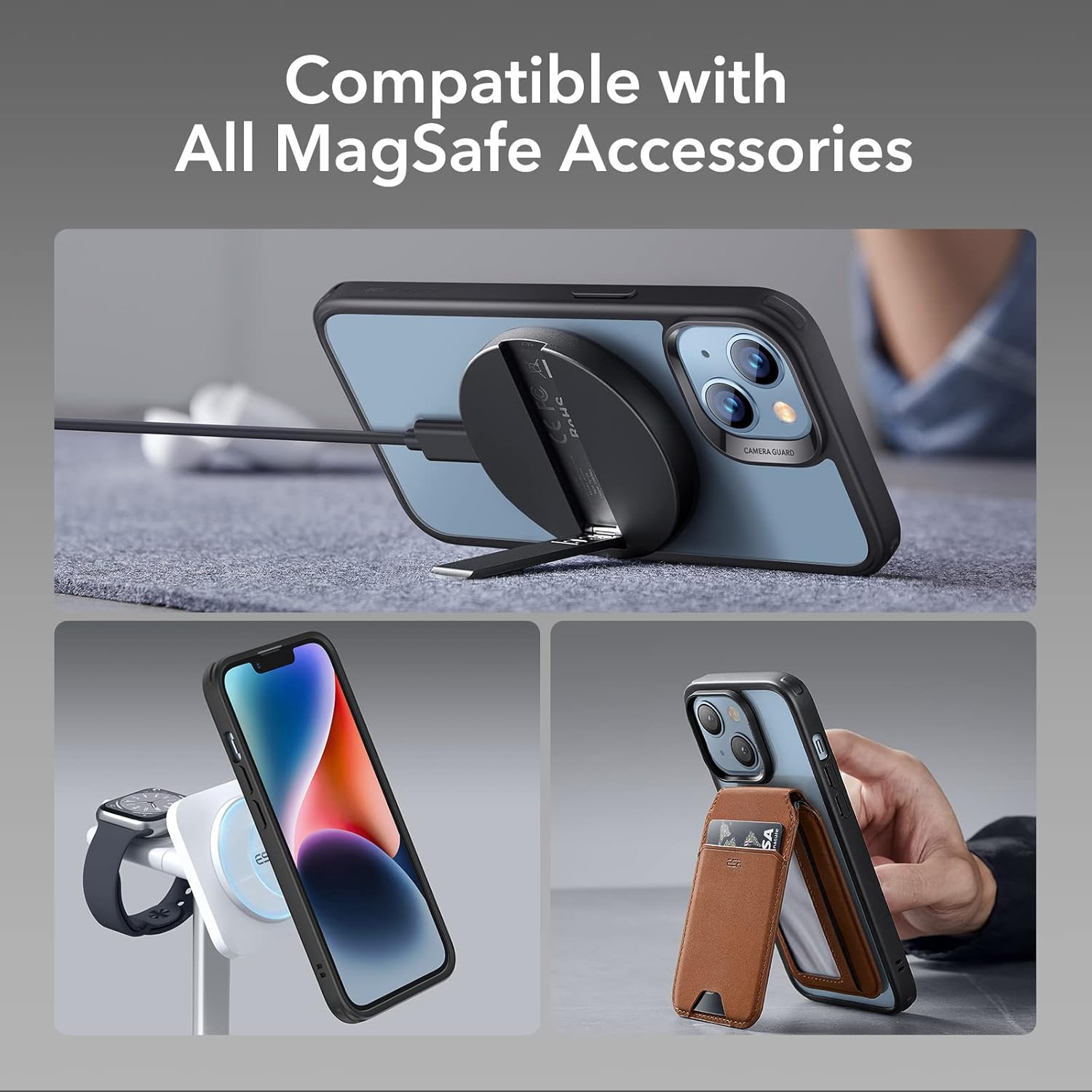 ESR калъф за iPhone 14/iPhone 13, съвместим с MagSafe, класически хибриден магнитен калъф за мобилен телефон за iPhone 14/13, военен стандарт, защита от падане, устойчив на надраскване гръб, прозрачно черен
