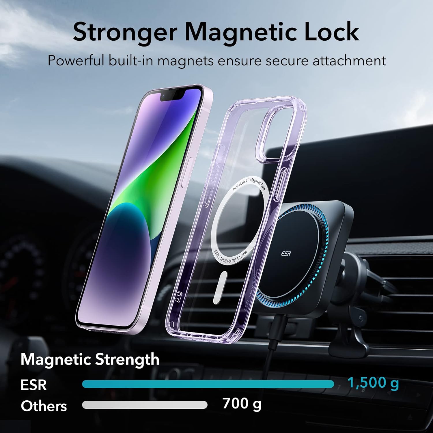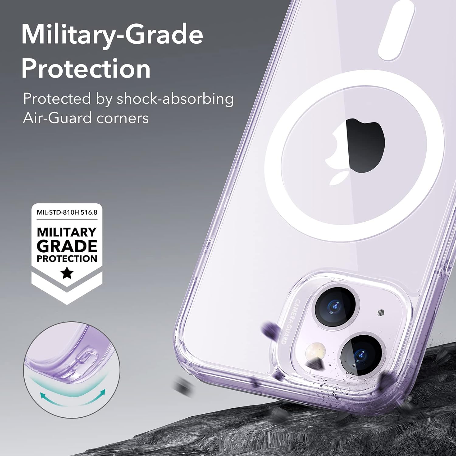 ESR калъф за iPhone 14/iPhone 13, съвместим с MagSafe, класически хибриден магнитен калъф за мобилен телефон за iPhone 14/13, военен стандарт, защита от падане, устойчив на надраскване гръб, прозрачно лилав