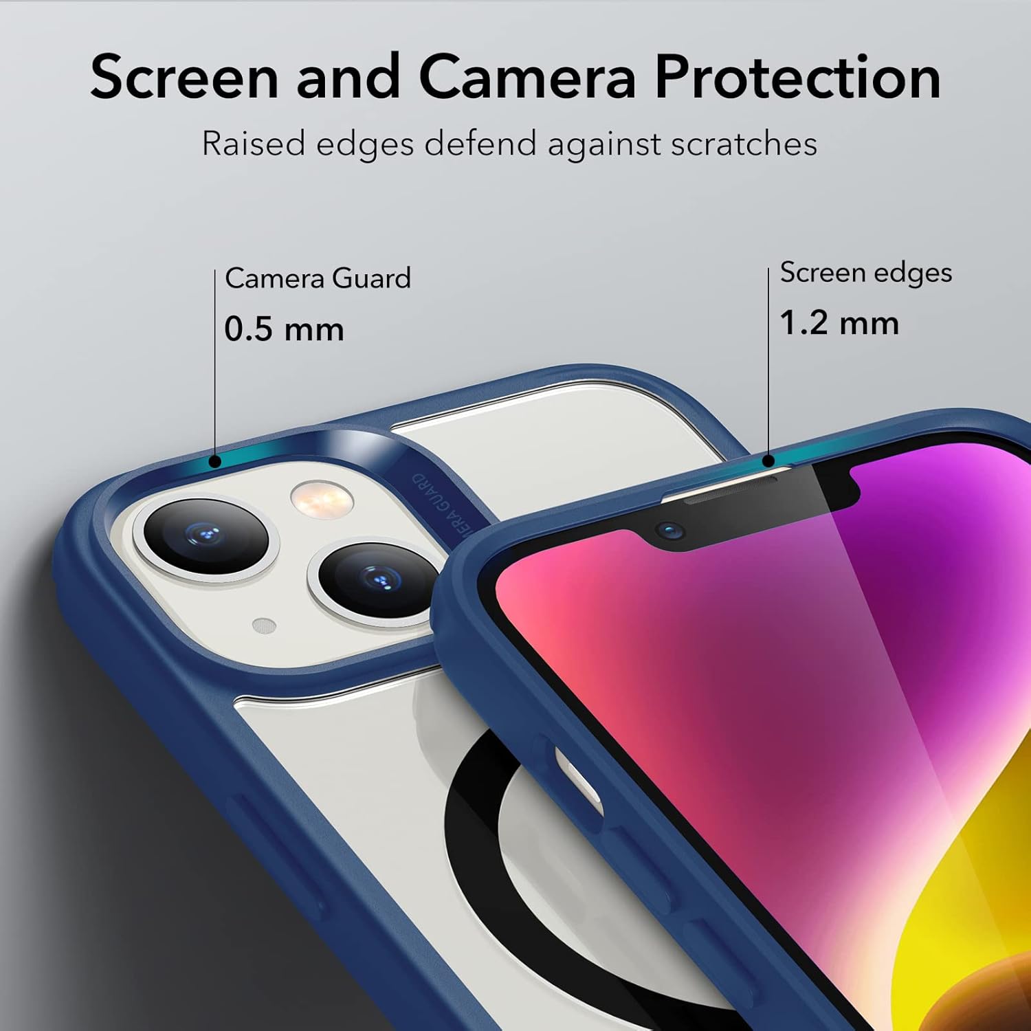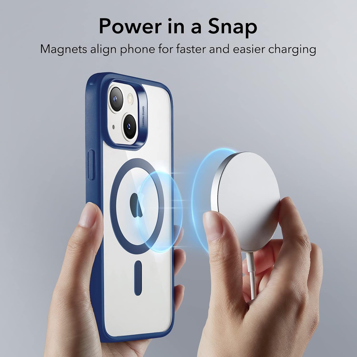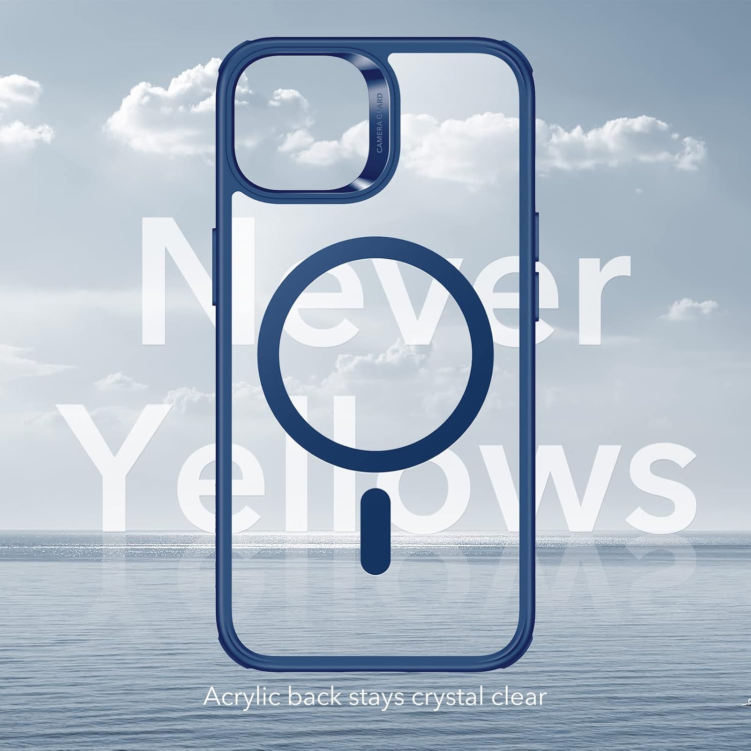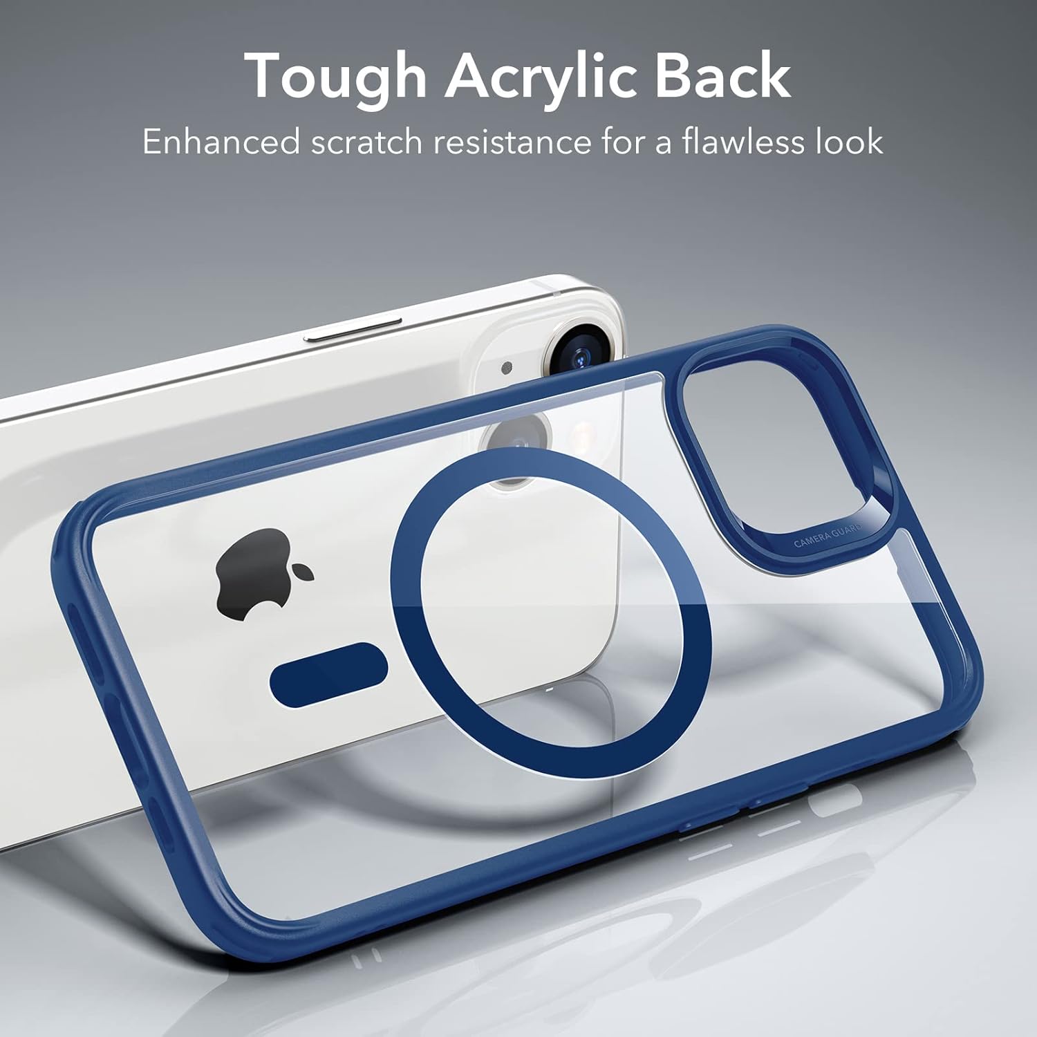 ESR калъф за iPhone 14/iPhone 13, съвместим с MagSafe, класически хибриден магнитен калъф за мобилен телефон за iPhone 14/13, военен стандарт, защита от падане, устойчив на надраскване гръб, прозрачно син