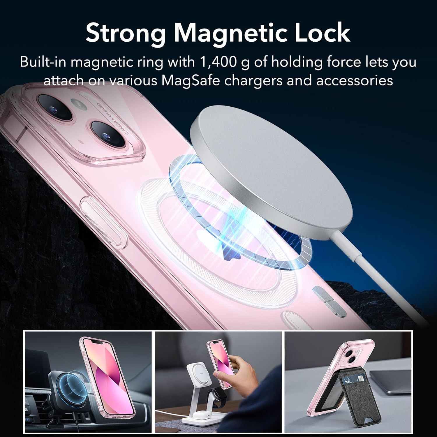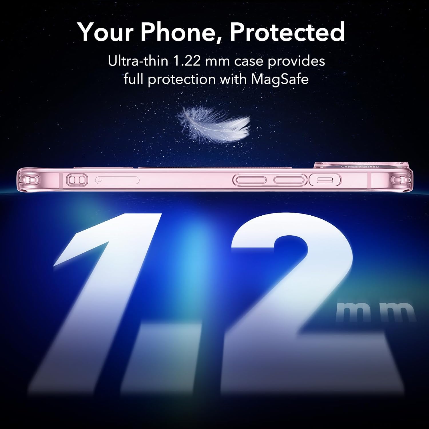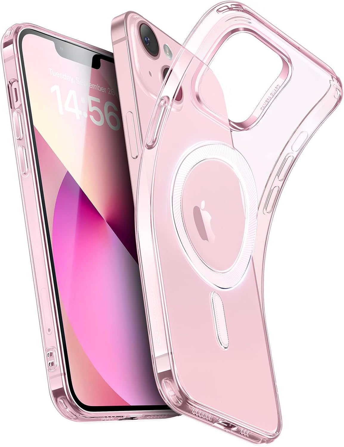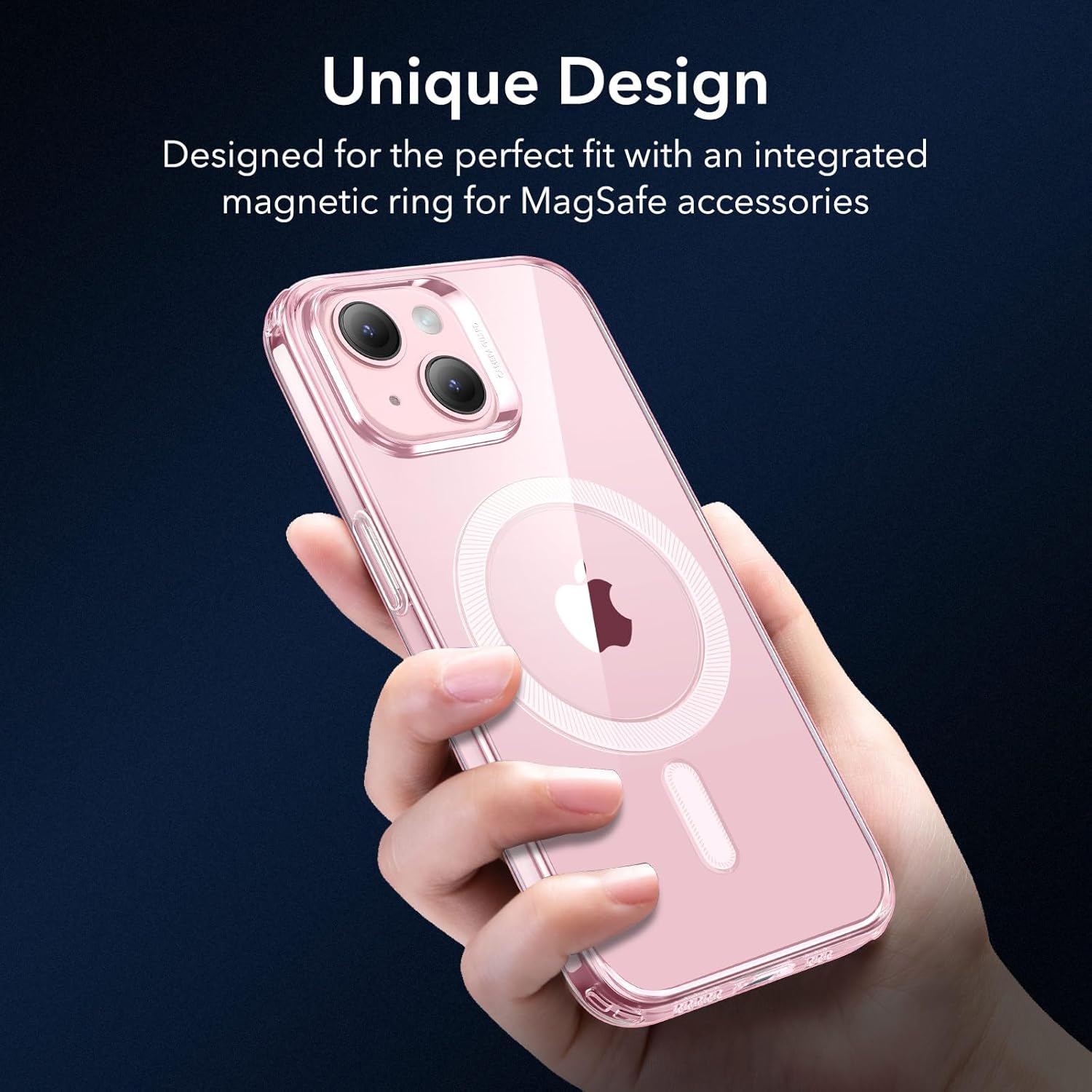 ESR калъф за iPhone 14/iPhone 13, съвместим с MagSafe, прозрачен силиконов калъф за мобилен телефон за iPhone 14/13, удароустойчив, тънък, устойчив на пожълтяване, прозрачен защитен калъф, серия Zero, розов