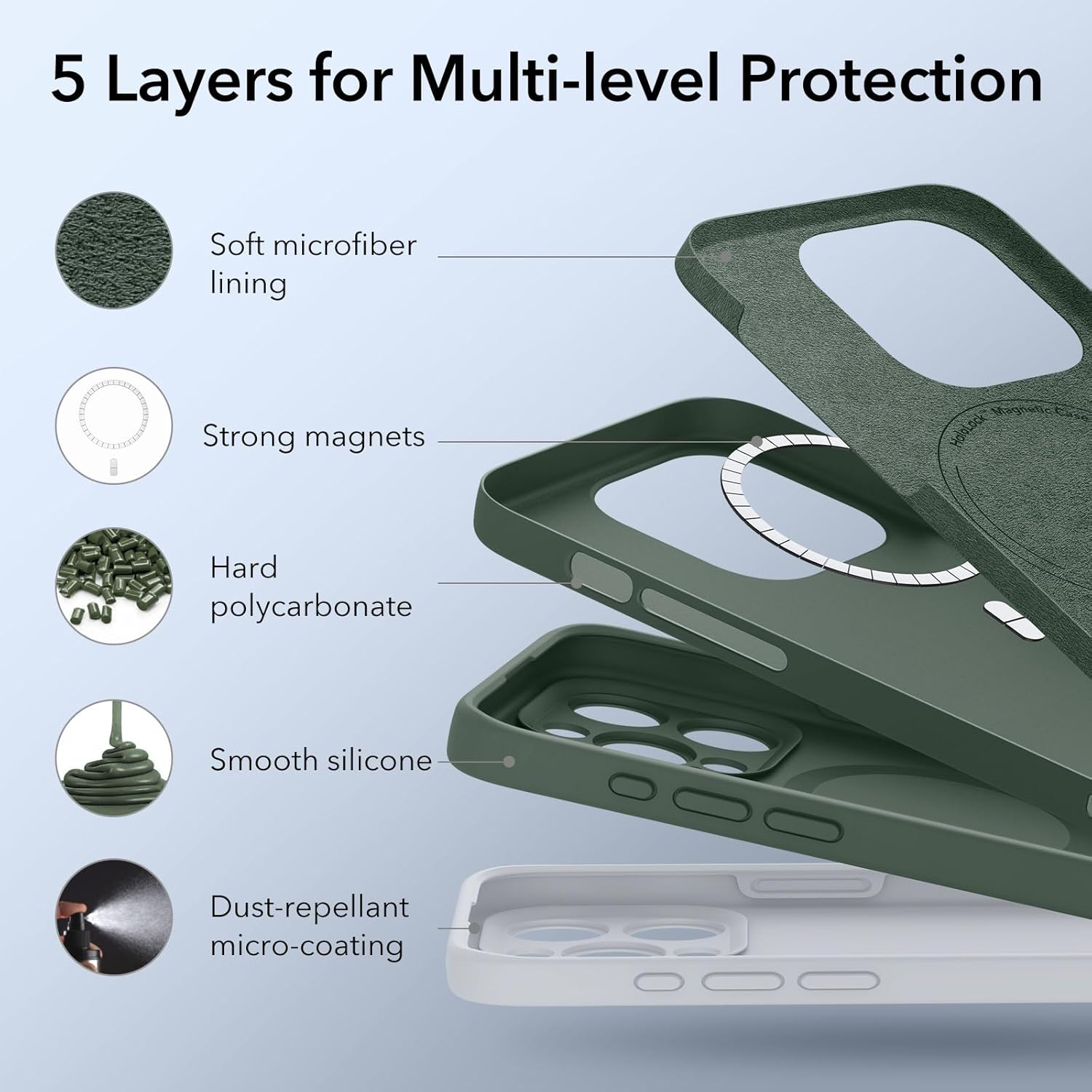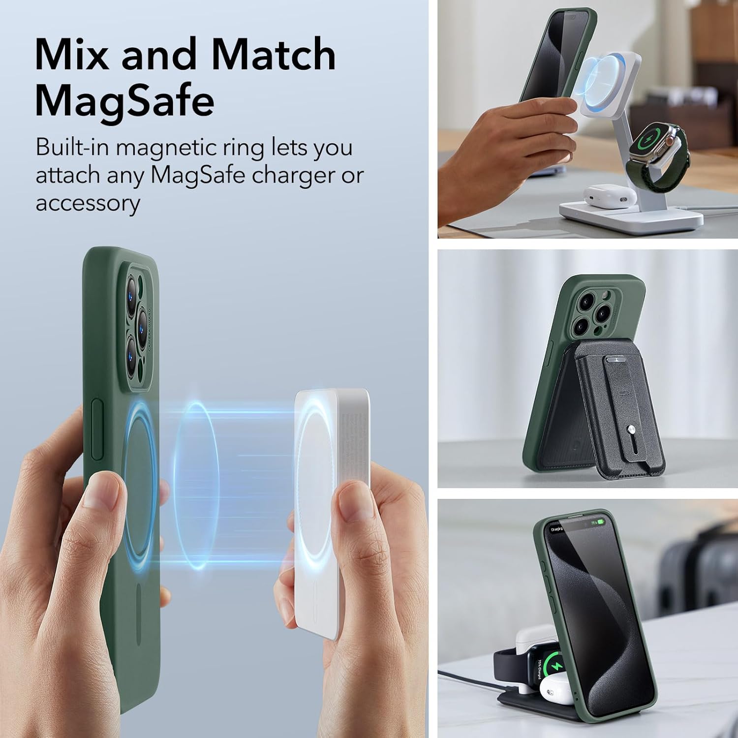 ESR калъф за iPhone 15 Pro Max, съвместим с MagSafe, поддържа магнитно зареждане, тънък калъф за мобилен телефон за iPhone 15 Pro Max от течен силикон, ударопоглъщаща защита на дисплея и камерата, зелен