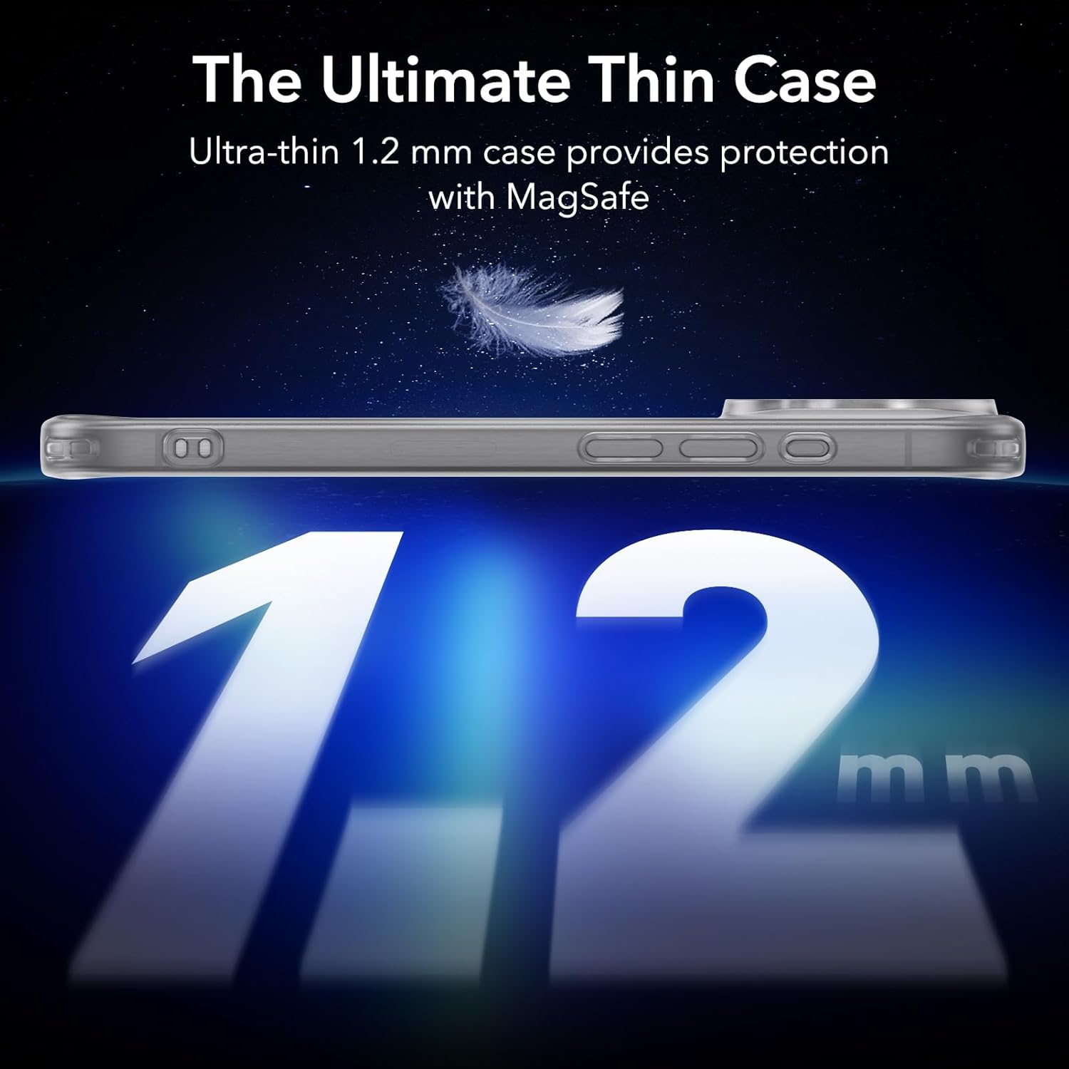 ESR калъф за iPhone 15 Pro, прозрачен силиконов калъф с MagSafe, удароустойчив тънък капак, устойчив на пожълтяване тънък прозрачен TPU калъф за мобилен телефон, серия Zero, сив