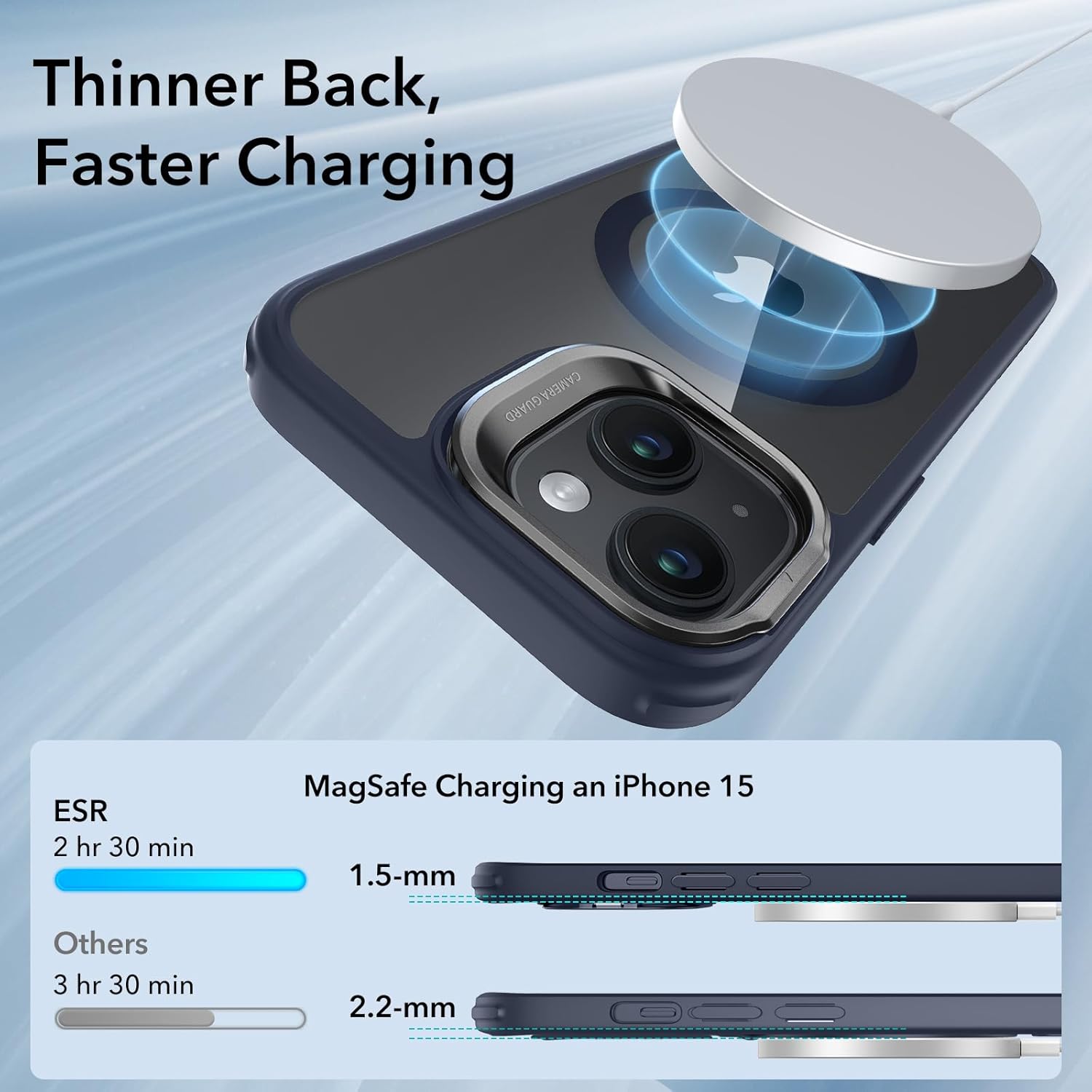 ESR калъф за iPhone 15, съвместим с MagSafe, сертифициран военен защитен калъф за мобилен телефон, калъф за iPhone 15, вградена скрита стойка за мобилен телефон, защитен калъф за гръб, устойчив на надраскване