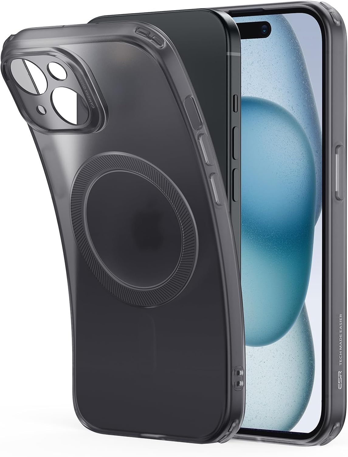 ESR калъф за iPhone 15, съвместим с MagSafe, защита на камерата, удароустойчив тънък калъф за мобилен телефон за iPhone 15, устойчив на пожълтяване и драскотини, магнитен силиконов защитен калъф, черен
