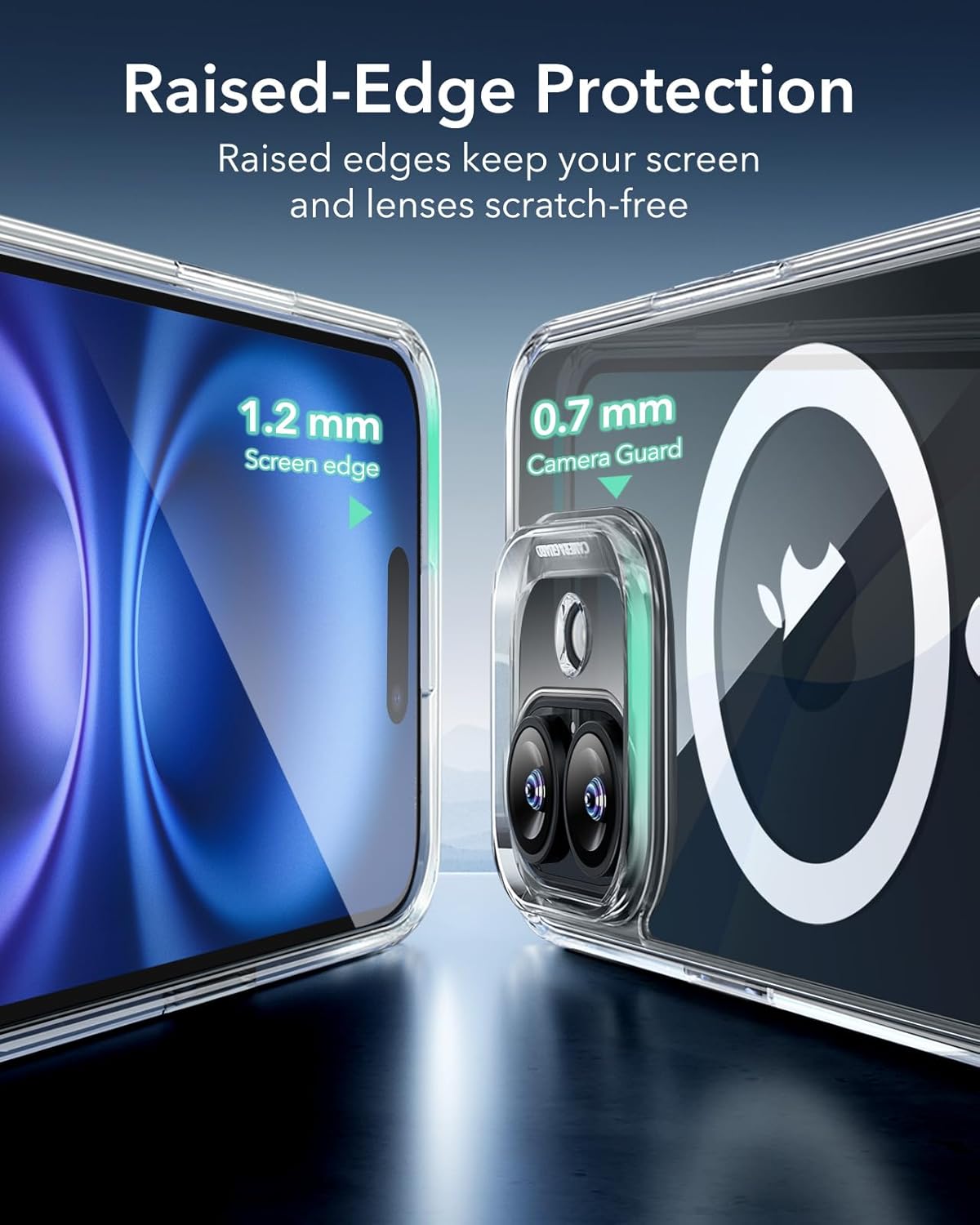 • [Повишена цялостна защита за дисплея и камерата] за калъф за iPhone 17 Pro с MagSafe: повдигнатите ръбове на дисплея и рамката на обектива, предпазваща камерата от всички страни, не само осигуряват подобрена защита от надраскване, но и ефективно предпазват от повреда на дисплея и обектива на камерата в случай на падане - независимо дали е изпуснат случайно от масичката за кафе или е силно ударен върху каменен под.
