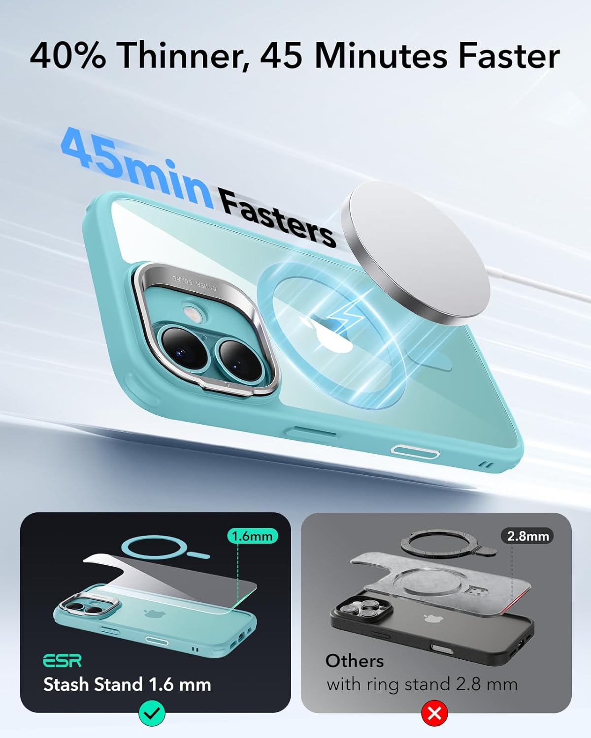 • [По-здраво магнитно затваряне] Силните вградени магнити със сила на задържане от 1500 g позволяват по-бързо и лесно безжично зареждане на място, както и носене със себе си и сигурно затваряне на всеки MagSafe аксесоар. Идеален за вашия iPhone 17 Pro Max калъф MagSafe.