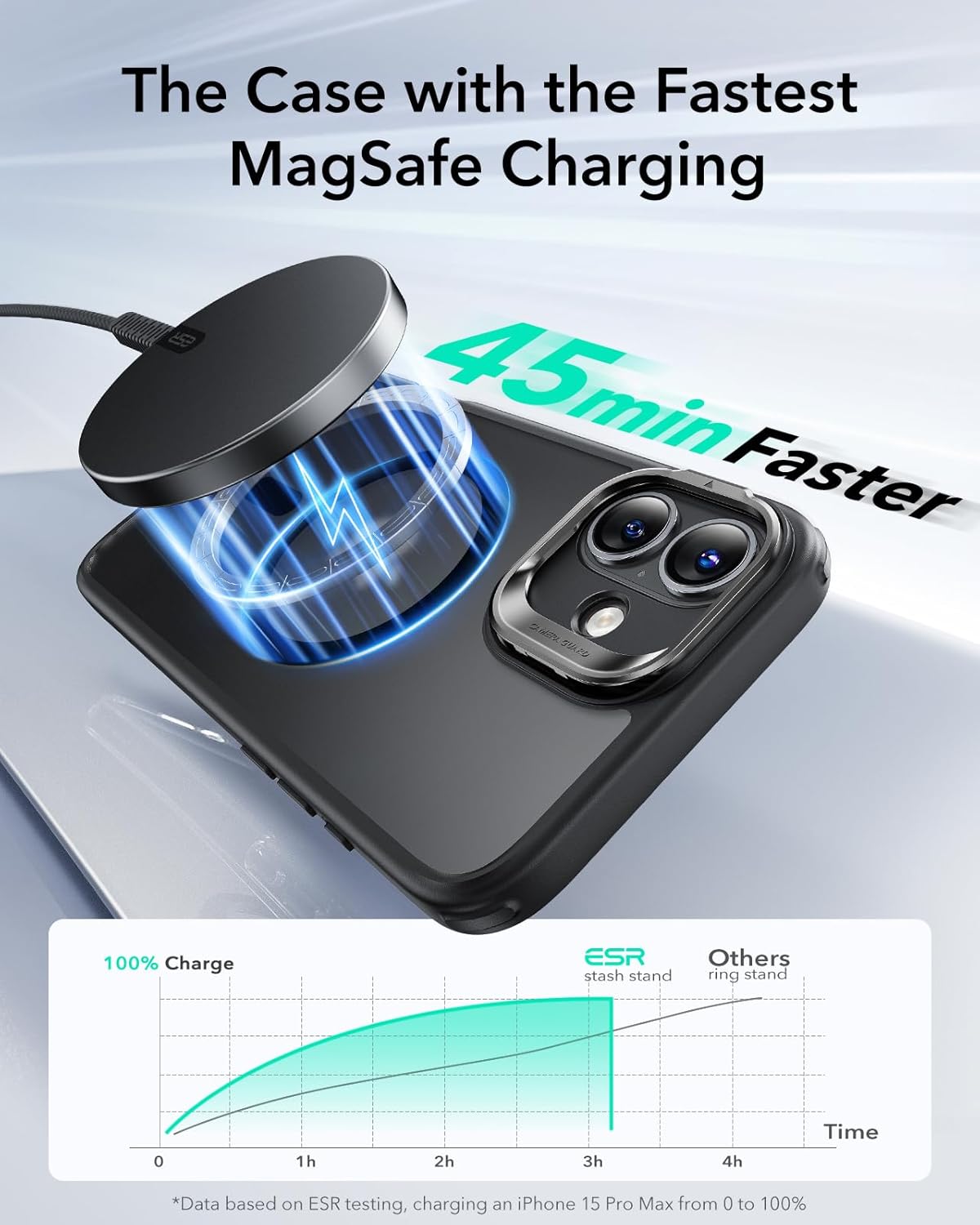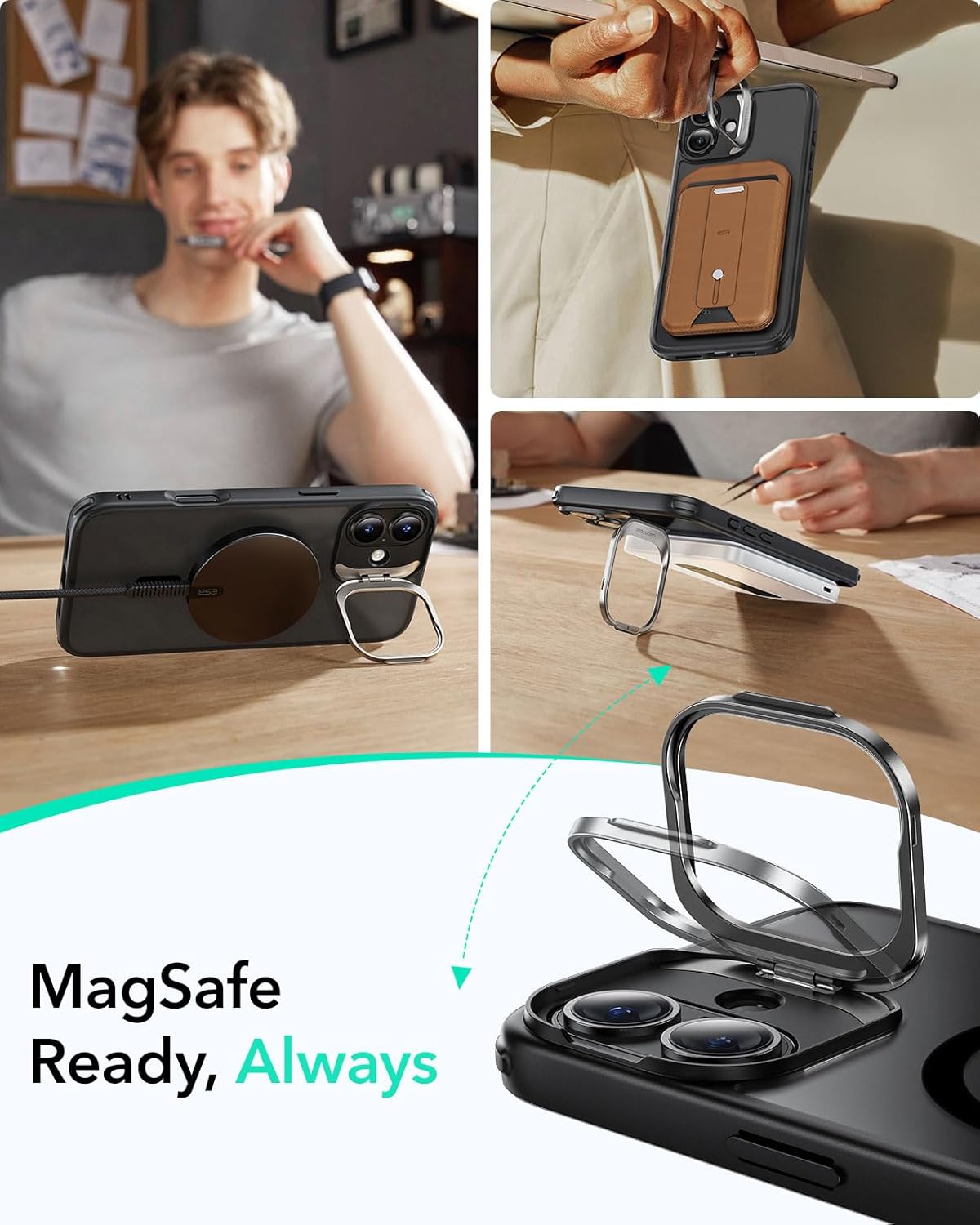 ESR калъф за iPhone 16 Plus, съвместим с MagSafe, защитен калъф по военен стандарт, вградена скрита стойка, калъф за мобилен телефон, устойчив на надраскване гръб, серия Classic, матово черен