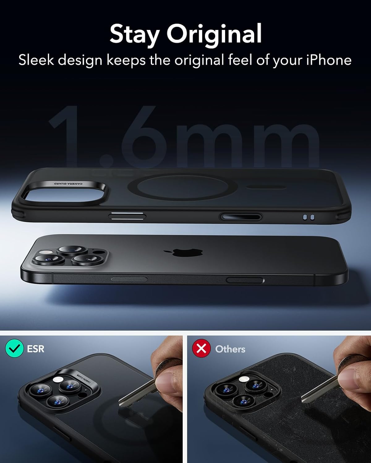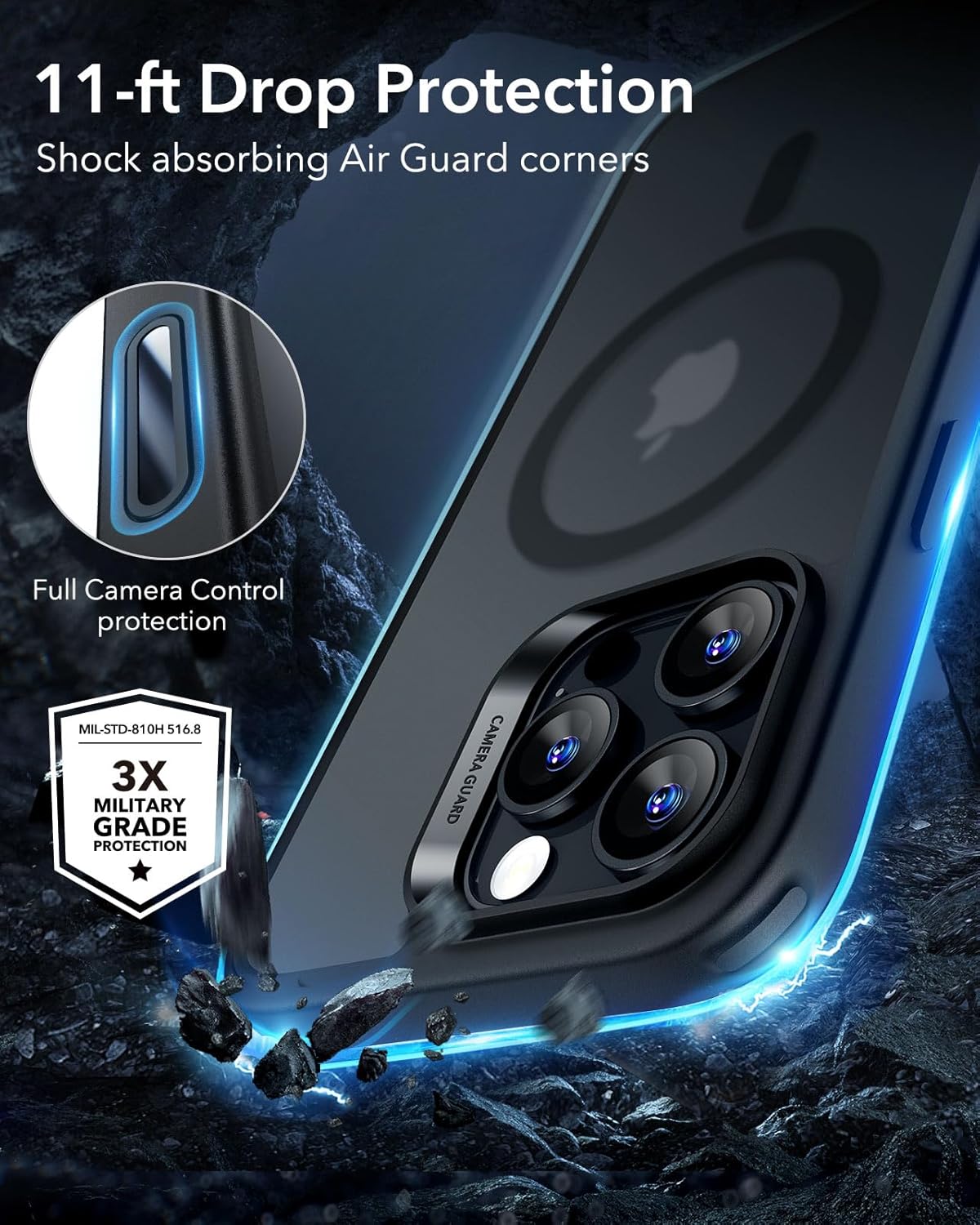 • [Повишена цялостна защита за дисплея и камерата] за калъф за iPhone 17 Pro с MagSafe: повдигнатите ръбове на дисплея и рамката на обектива, предпазваща камерата от всички страни, не само осигуряват подобрена защита от надраскване, но и ефективно предпазват от повреда на дисплея и обектива на камерата в случай на падане - независимо дали е изпуснат случайно от масичката за кафе или е силно ударен върху каменен под.
