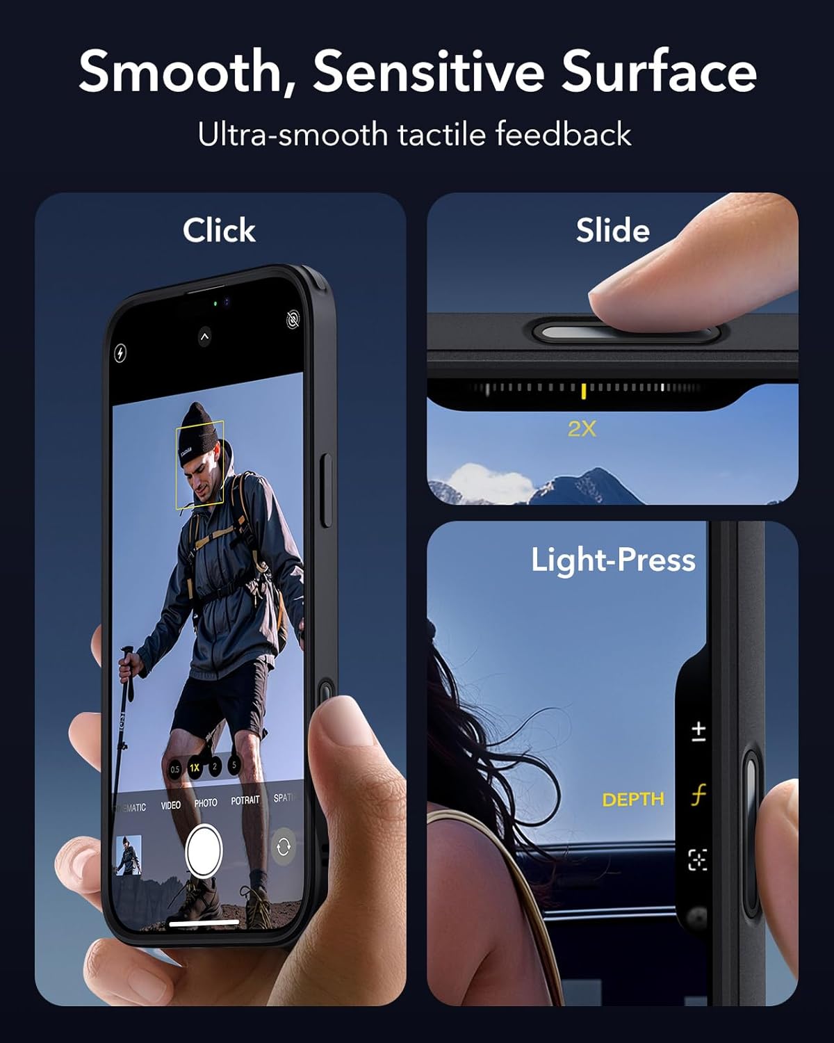 • Иновативен дизайн за управление на камерата: За разлика от конвенционалните калъфи за iPhone 17 Pro с незащитени изрези (натрупващи прах и разкриващи бутона на камерата), нашият вграден бутон за управление защитава оригиналния бутон с безшевен дизайн. Пълното покритие на зоната на бутона предпазва чувствителния оригинален бутон от механично износване.