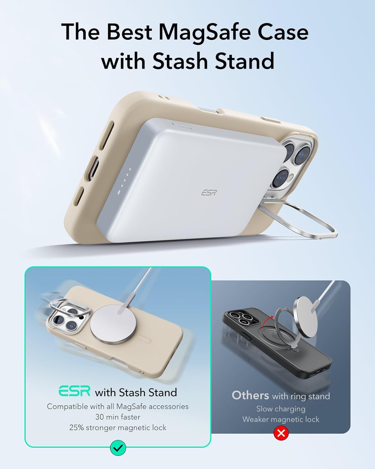• [По-здраво магнитно затваряне] Силните вградени магнити със сила на задържане от 1500 g позволяват по-бързо и лесно безжично зареждане на място, както и носене със себе си и сигурно затваряне на всеки MagSafe аксесоар. Идеален за вашия iPhone 17 Pro Max калъф MagSafe.