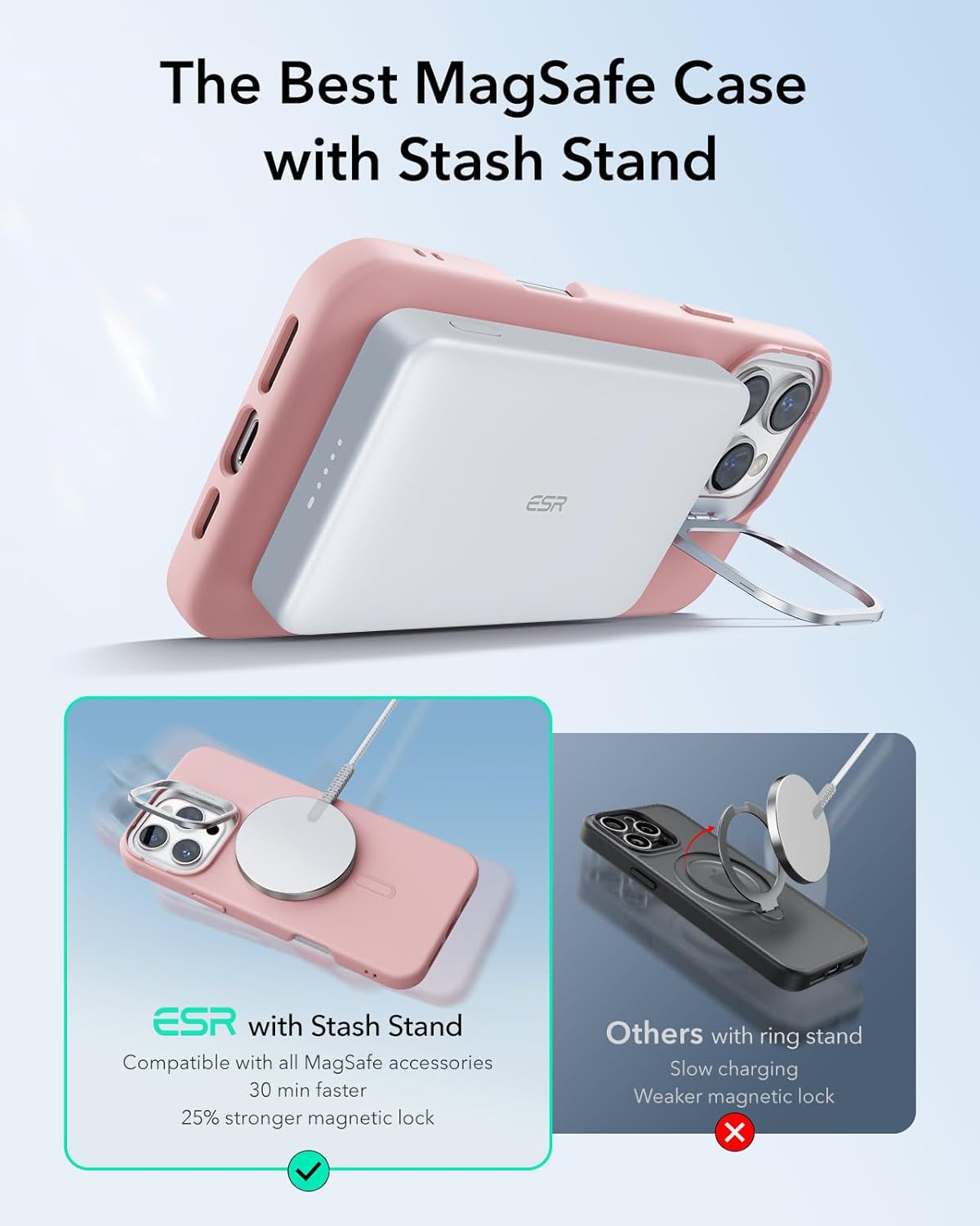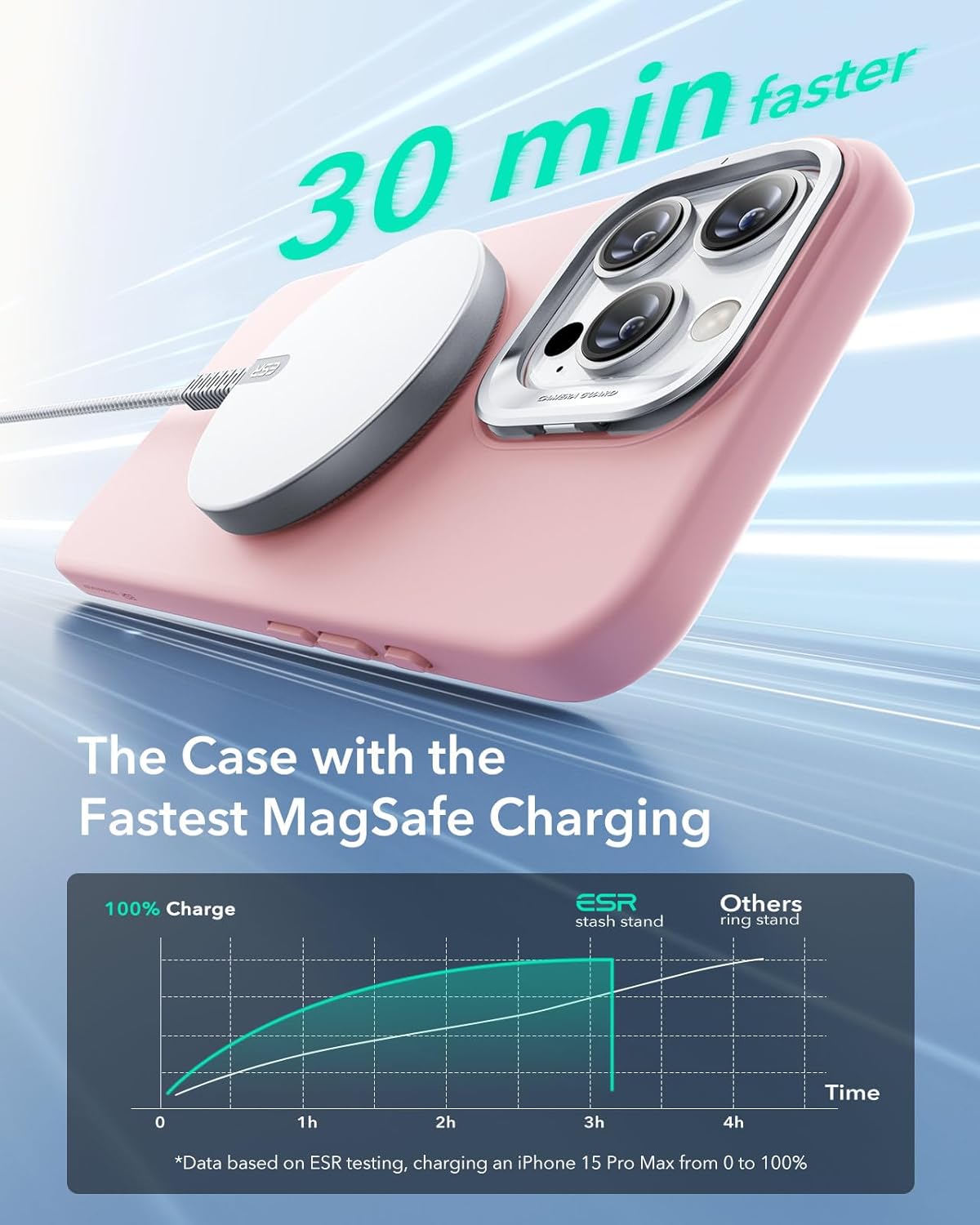 ESR Калъф за iPhone 16 Pro Max, Силиконов калъф със стойка, Съвместим с MagSafe, Вградена стойка за камера, Магнитен калъф за телефон за iPhone 16 Pro Max, Серия Cloud, Розов