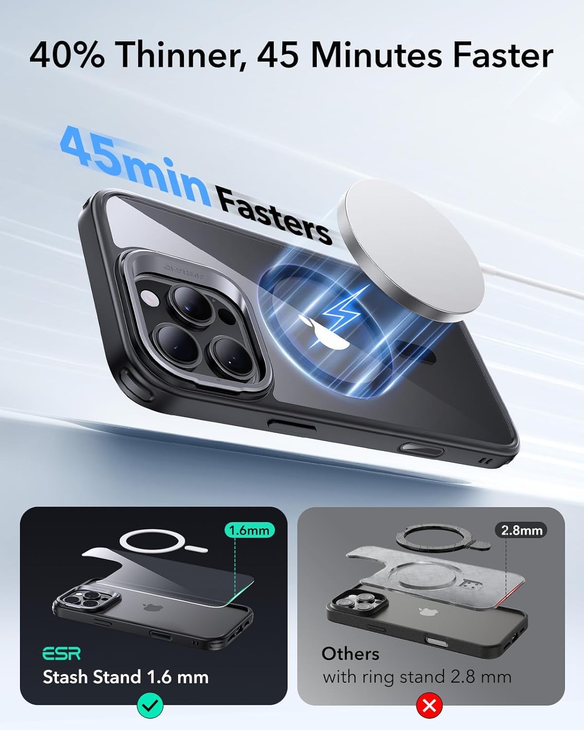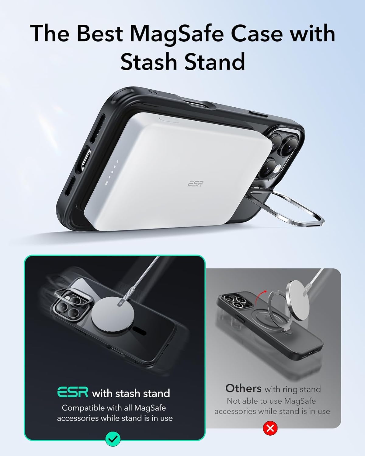 ESR калъф за iPhone 16 Pro Max, съвместим с MagSafe [Здрава стойка], сертифициран военен защитен калъф за мобилен телефон за iPhone 16 Pro Max, скрита стойка, удароустойчив, устойчив на надраскване